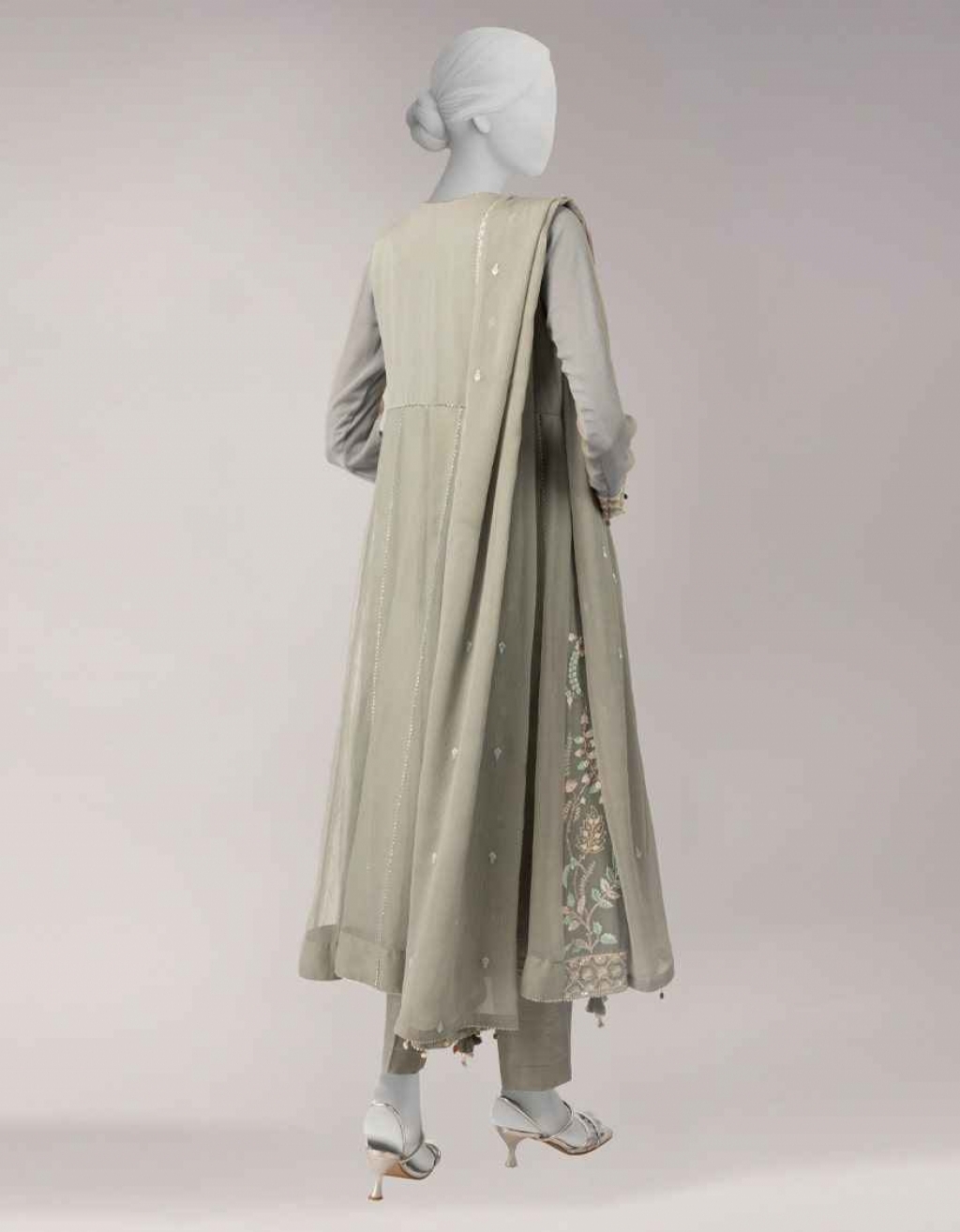 Style Collection: GREY CHIFFON EMBROIDERED UNSTITCHED 3 PIECE SUIT BY JUNAID JAMSHED