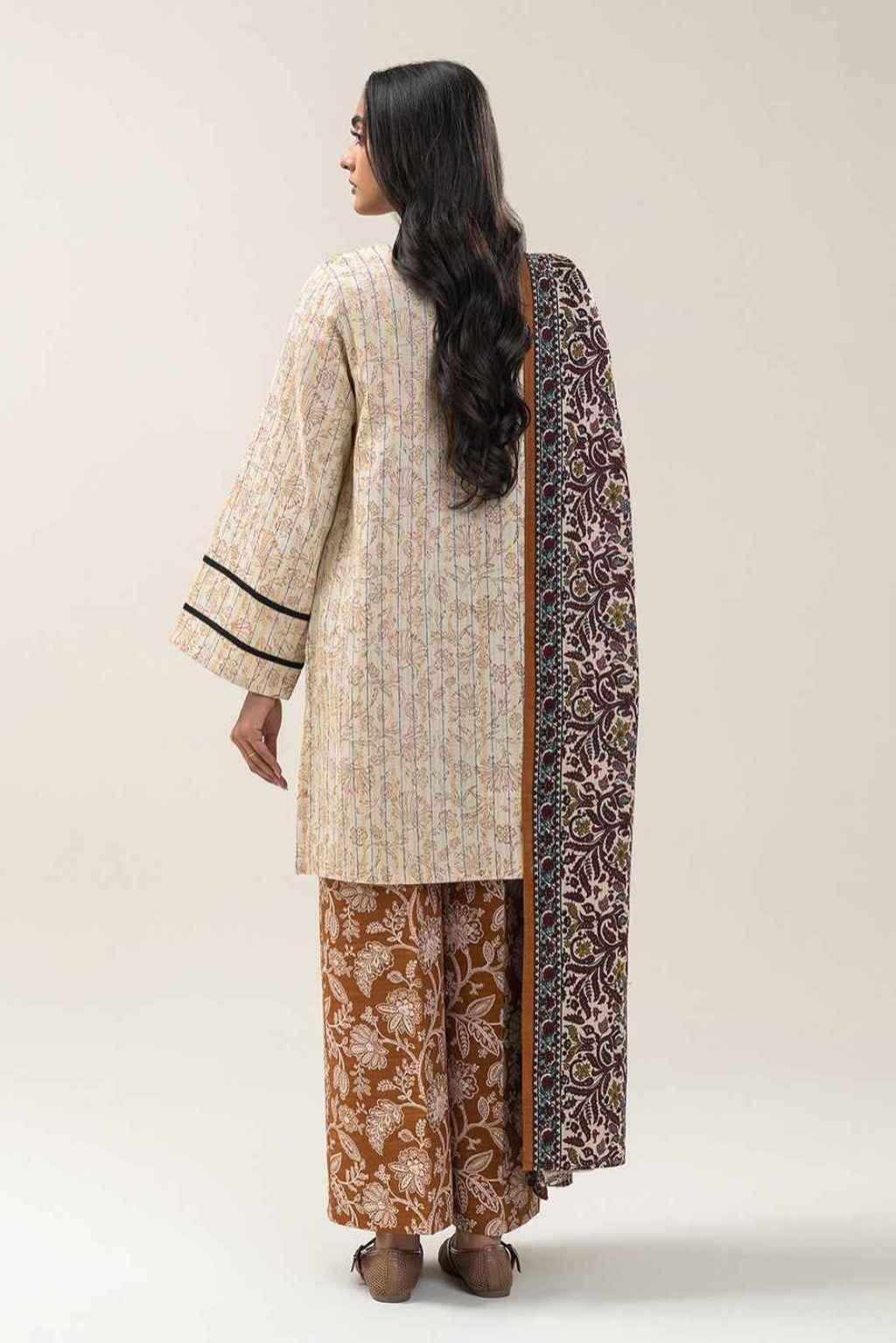 2.9 Mtrs Printed Khaddi Jq Shirt With Embroidery, Embroidered Neckline On Tissue 1 Pc, 2.5 Mtrs Printed Dobby Khaddar Dupatta, 1.8 Mtrs Printed Pants
