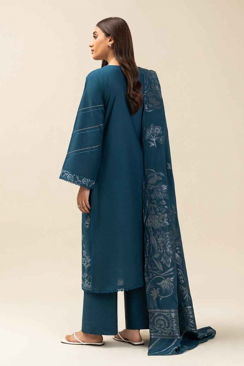 1.2 Mtrs Embroidered Lawn Front, 0.76 Mtrs Embroidered Sleeves Border, 0.5 Mtrs Lawn Sleeves, 1.2 Mtrs Lawn Back, 2.5 Mtrs Jacquard Dupatta, 1.8 Mtrs Dyed Pants