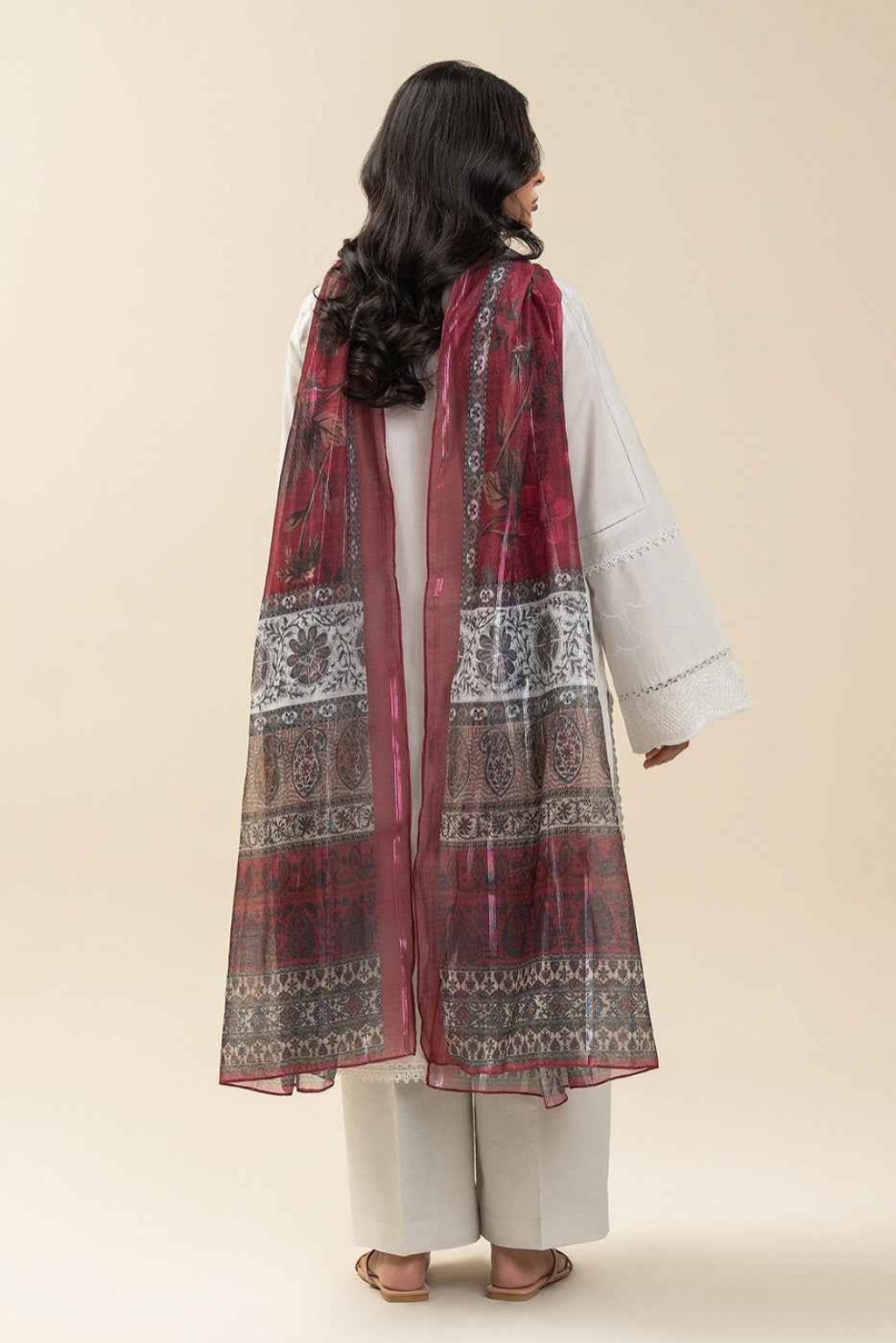 1.2 Mtrs Embroidered Lawn Front, 0.76 Mtrs Embroidered Sleeves Border, 0.5 Mtrs Lawn Sleeves, 1.2 Mtrs Lawn Back, 2.5 Mtrs Printed Silver Line Monarc Dupatta, 1.8 Mtrs Dyed Pants