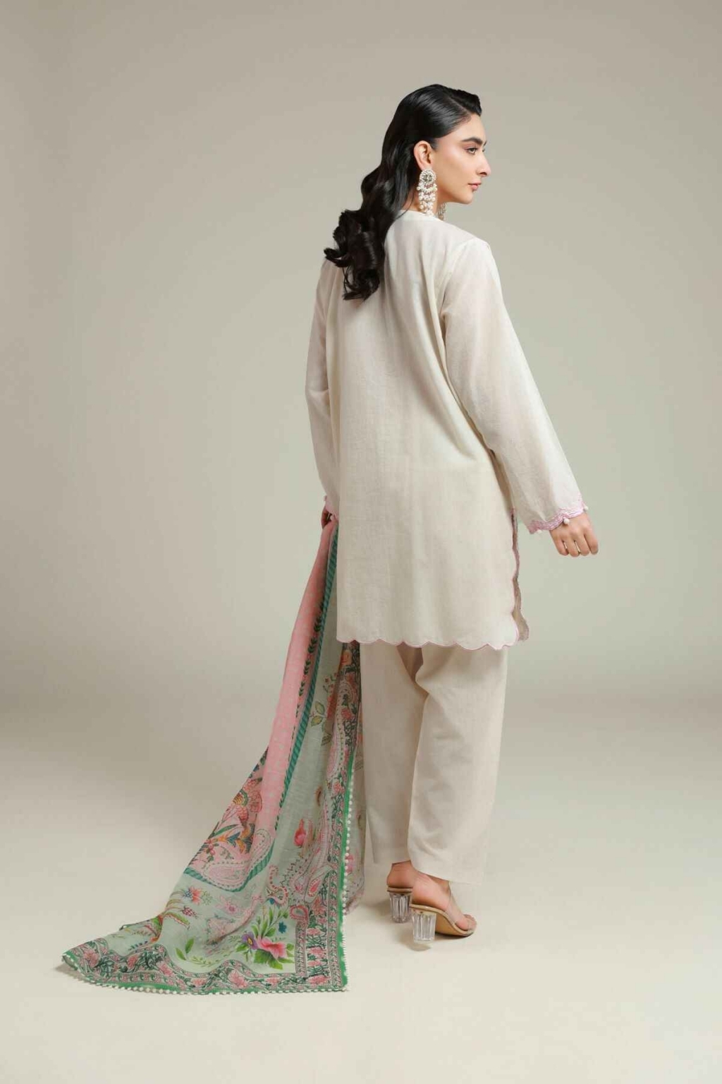 Top Fabric: Dyed Embroidered | Cambric | 3.25m Bottom Fabric: Dyed | Cambric | 2.5m Dupatta Fabric: Digital Printed | Textured Organza | 2.5m Material: Cambric