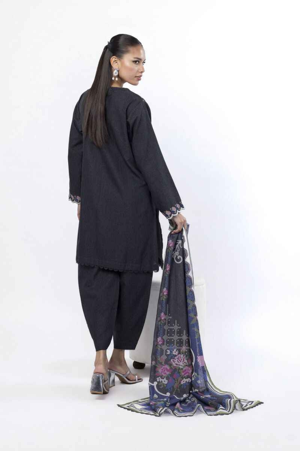 Fabrics 3 Piece Top Fabric: Dyed Embroidered Karandi | 3.25m Bottom Fabric: Dyed Karandi | 2.5m Dupatta Fabric: Digital Printed Karandi | 2.5m Material: Karandi