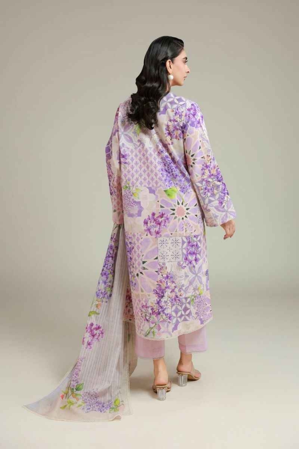 Fabrics 3 Piece Top Fabric: Digital Printed | Messuri | 3m Bottom Fabric: Dyed | Cambric | 2.5m Dupatta Fabric: Digital Printed | Messuri | 2.5m Material: Messuri