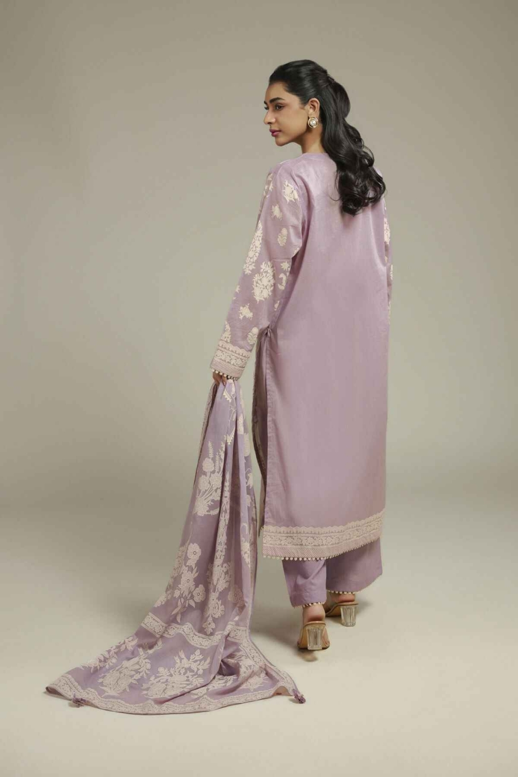 Fabrics 3 Piece Top Fabric: Puff Paste Printed | Cambric | 3m Bottom Fabric: Dyed | Cambric | 2.5m Dupatta Fabric: Puff Paste Printed | Lawn | 2.5m Material: Cambric