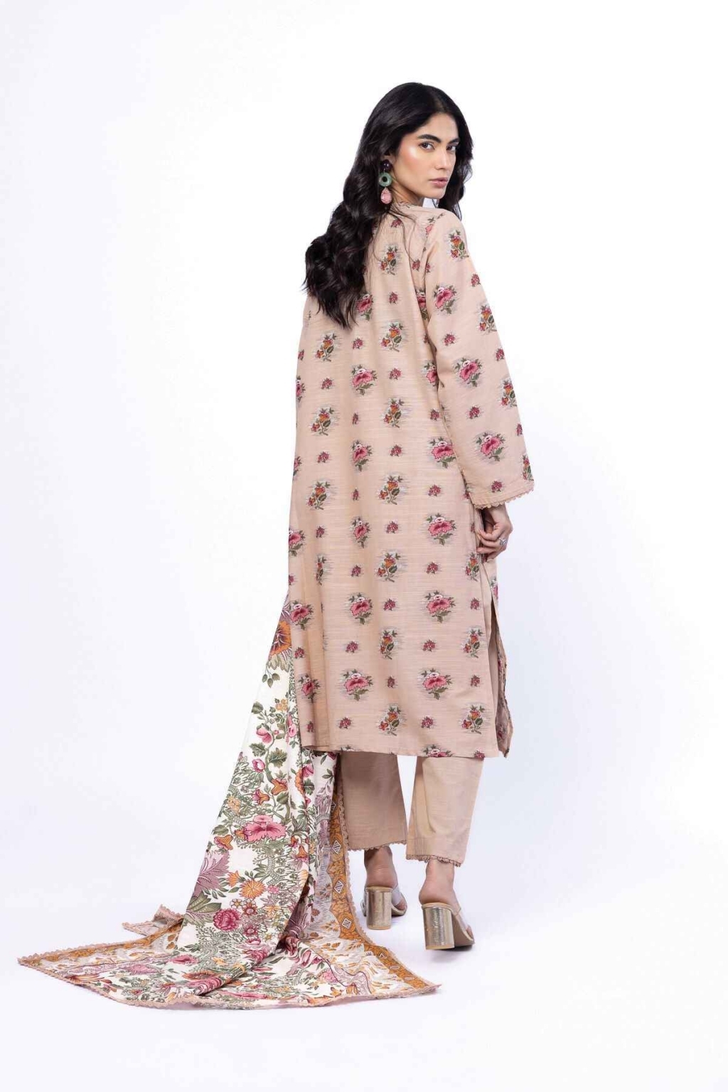Top Fabric: Printed Slub Cotton | Front 1.25 Back + Sleeves 2m Bottom Fabric: Dyed Khaddar | 2.5m Dupatta Fabric: Printed Slub Cotton | 2.5m Material: Slub Cotton Add Ons: Embroidered Organza Border | 1m Embroidered Organza Bunches | 2pc
