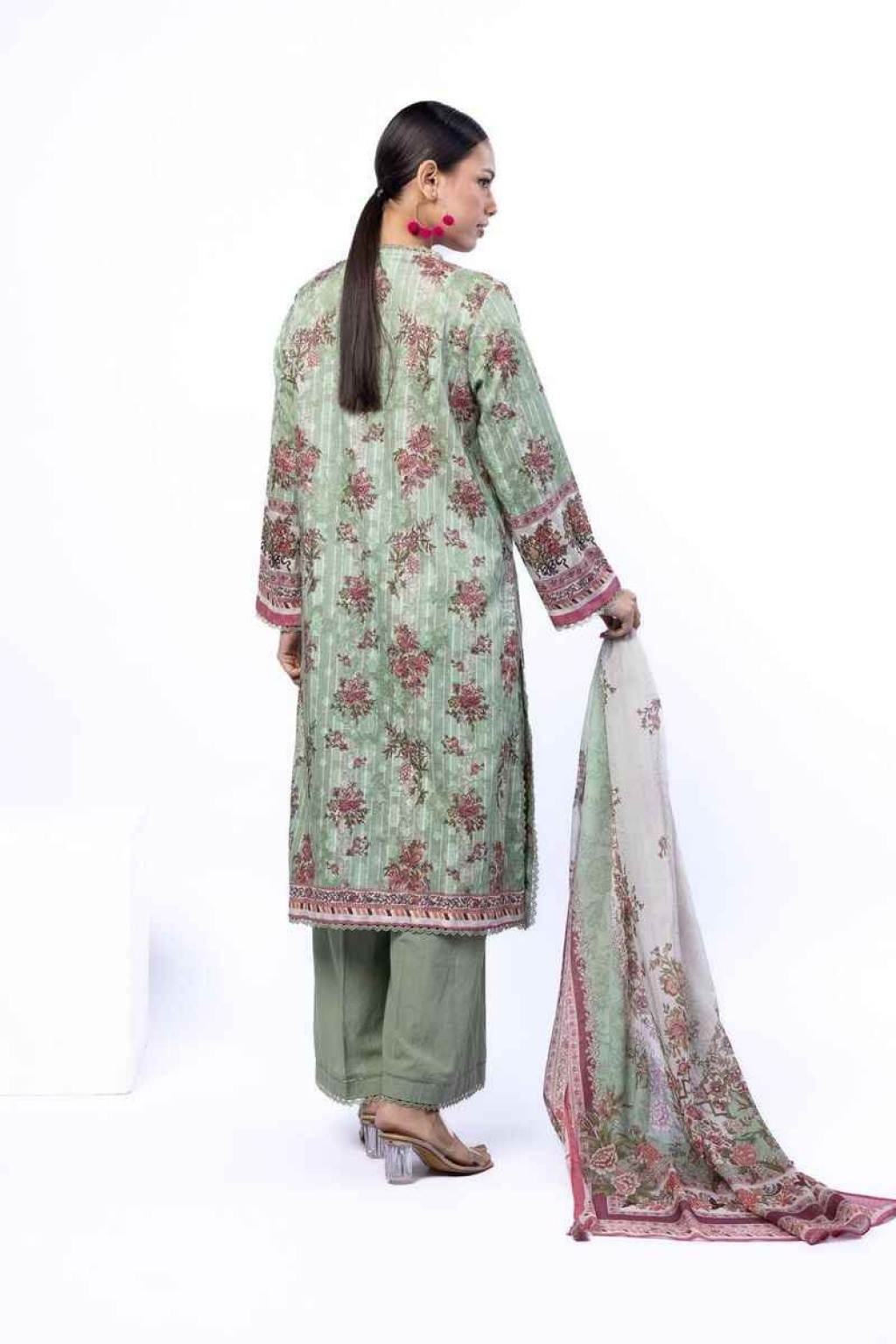 Style Collection: Light Green Tailored 3 Piece Printed Broshia 3pc Suit by Khaadi