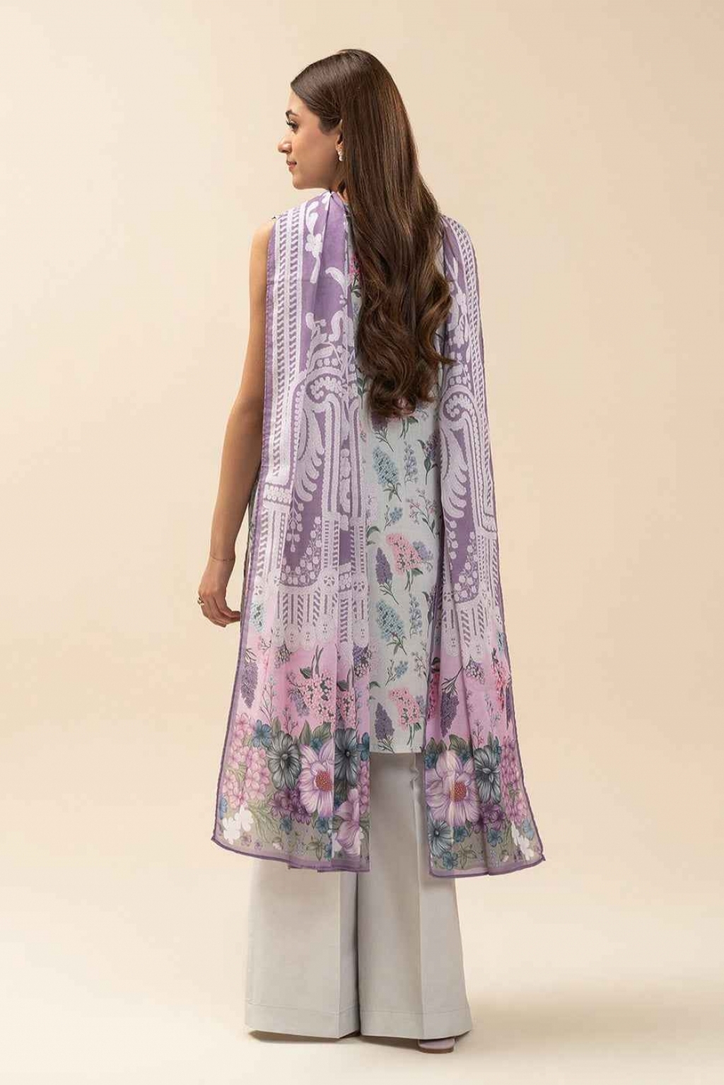 2.9 Mtrs Printed Lawn Shirt, Embroidered Neckline On Tissue 1 Pc, 2.5 Mtrs Printed Lawn Dupatta, 2.5 Mtrs Dyed Pants