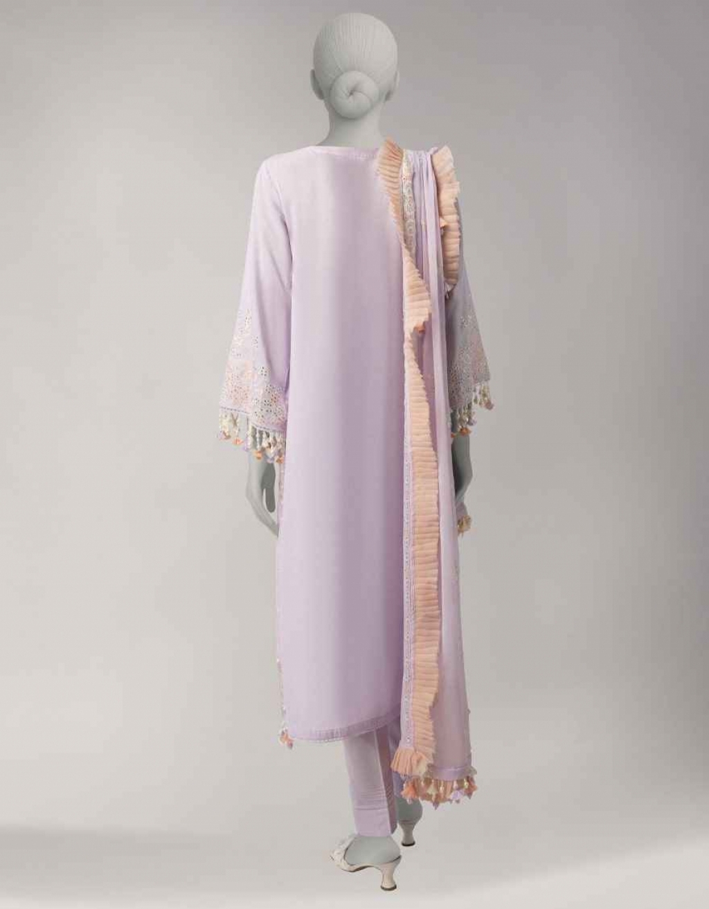 LUXE | Embroidered 3 Piece Schiffli Lawn Shirt: 3 Meters Schiffli Chiffon Dupatta: 2.5 Meters Dyed Lawn Trouser: 2.5 Meters