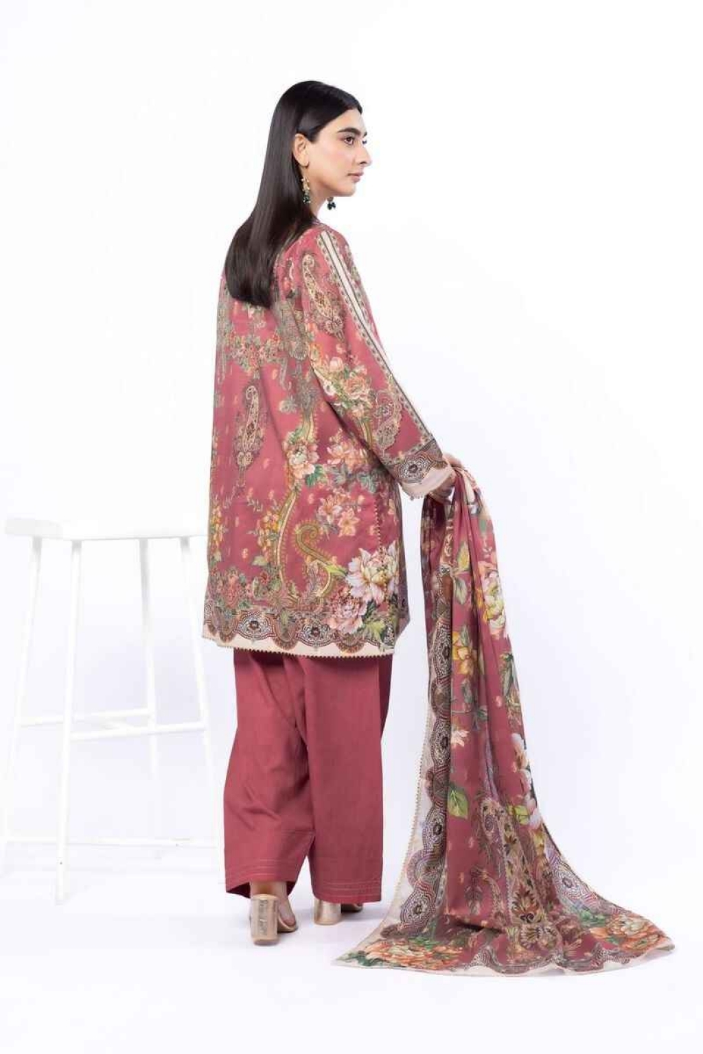 Style Collection: Maroon with Dusty Rose Floral Print unstitched 3 piece dyed Printed | Jacquard 3pc suit by khaadi