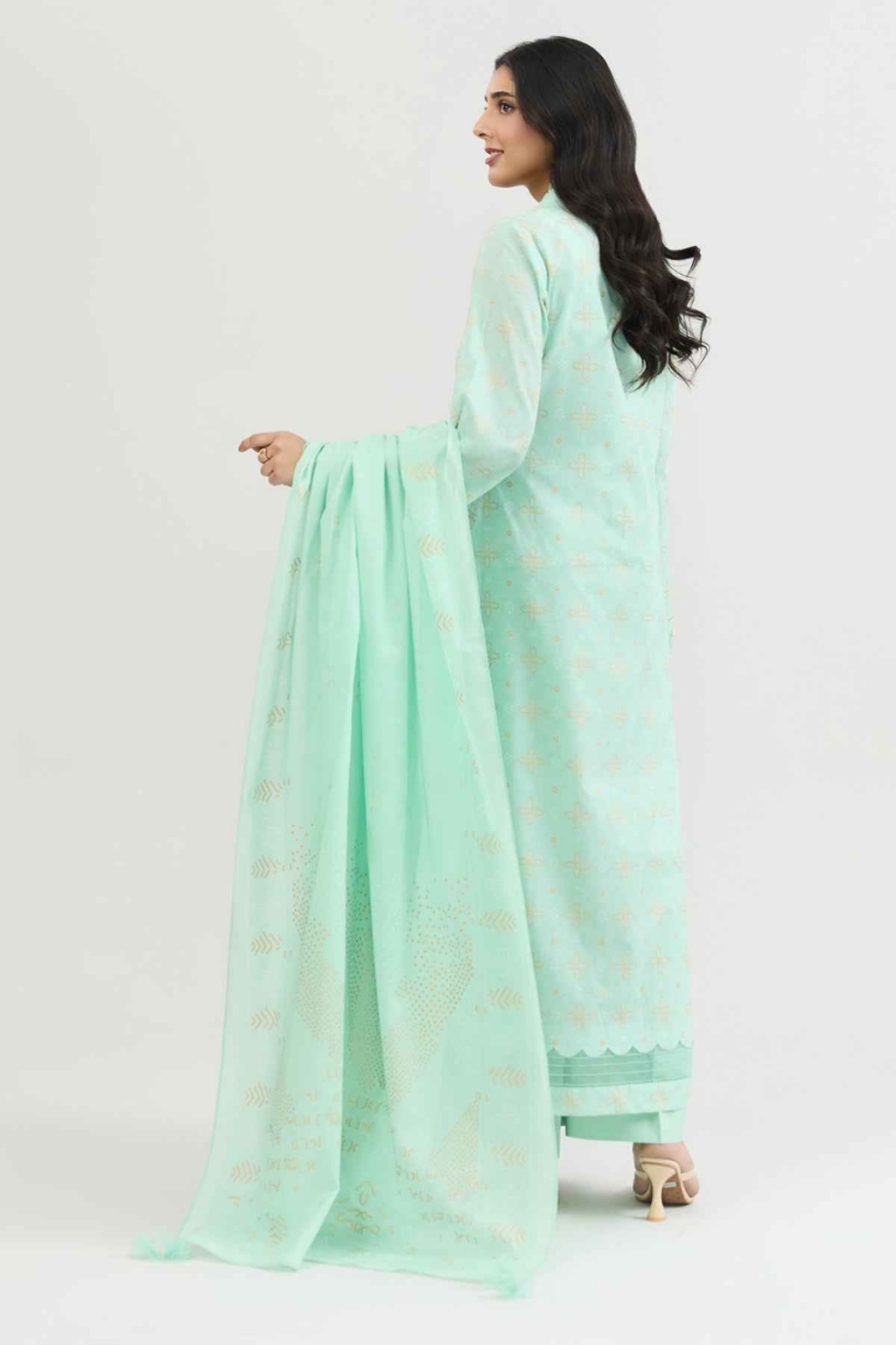Eid collection 2026 sale 3-Piece Stitched Shirt Printed Wider Width Lawn Shirt 2.5 M Fabric: Lawn Color: Sea Green Dupatta Printed Lawn Dupatta 2.5 M Fabric: Lawn Color: Sea Green Trouser Dyed Cambric Trouser 2.5 M Fabric: Cambric Color: Sea Green