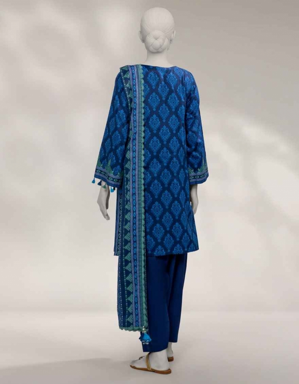 BLUE LAWN EMBROIDERED UNSTITCH...