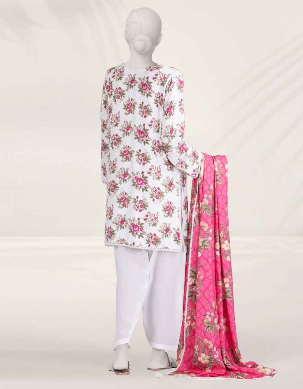 Basic 3 Piece Digital Printed Linen Shirt: 3.02 Meters Digital Printed Linen Dupatta: 2.5 Meters Dyed Linen Trouser: 2.5 Meters