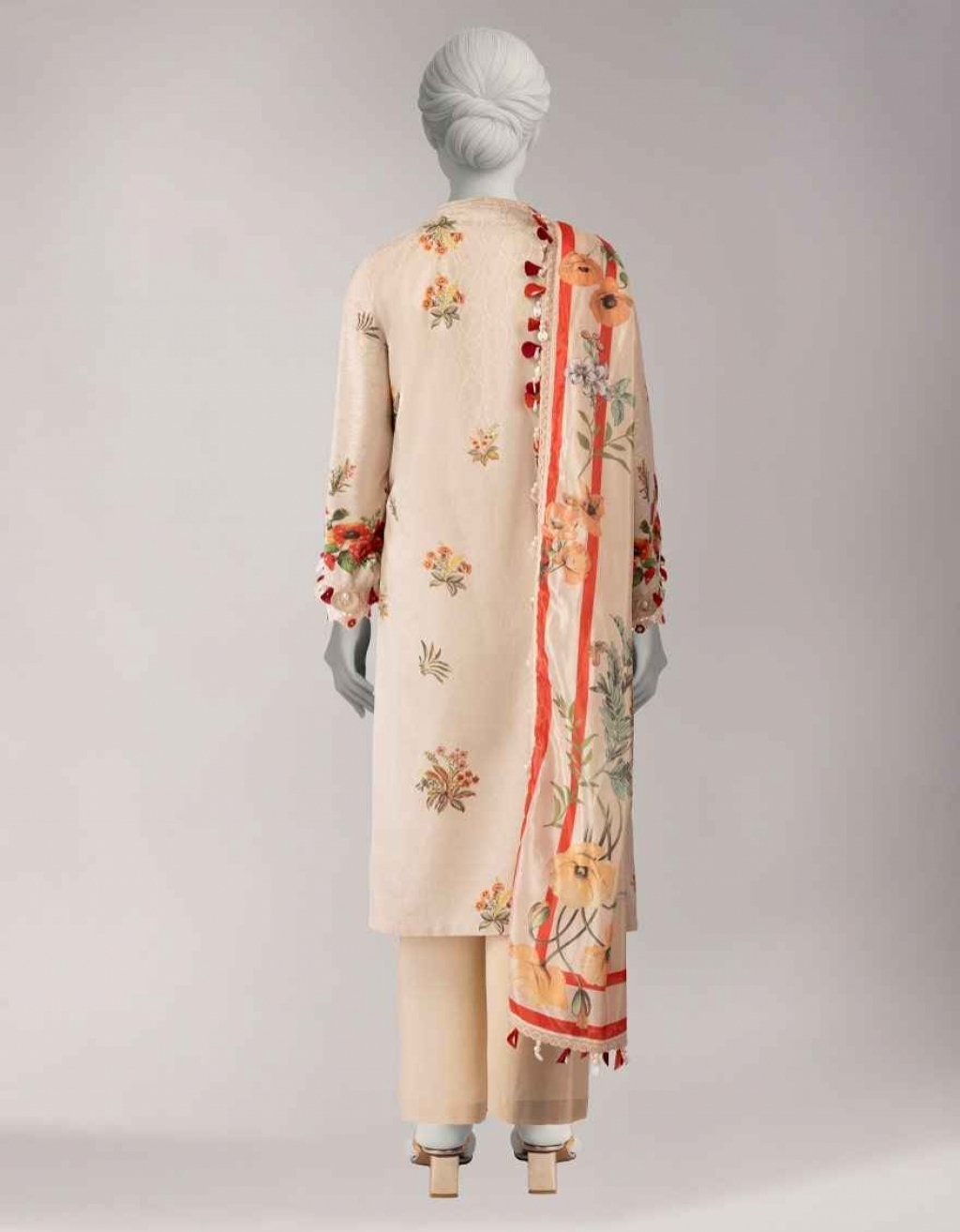 NOYA | Embroidered 3 Piece Embroidered Digital Printed Dobby Shirt: 3 Meters Digital Printed Silk Dupatta: 2.5 Meters Dyed Lawn Trouser: 2.5 Meters