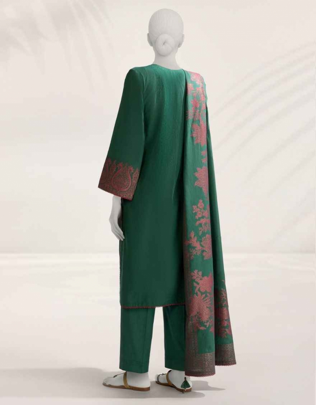 Basic 3 Piece Lurex Jacquard Shirt: 3.02 Meters Lurex Jacquard Dupatta: 2.5 Meters Dyed Lawn Trouser: 2.5 Meters