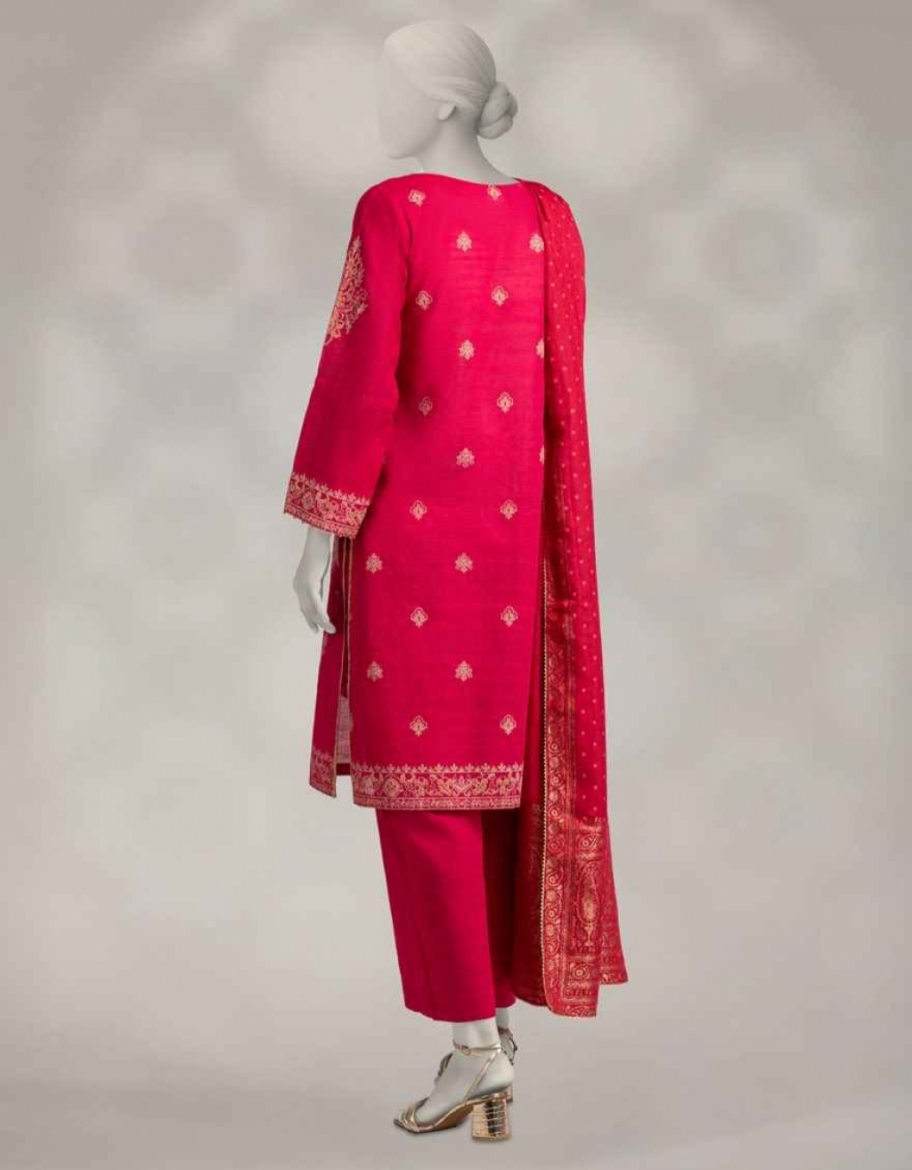 Basic 3 Piece Gold & Pastte Printed Khaddar Shirt: 3.02 Meters Jacquard Dupatta: 2.5 Meters Dyed Khaddar Trouser: 2.5 Meters