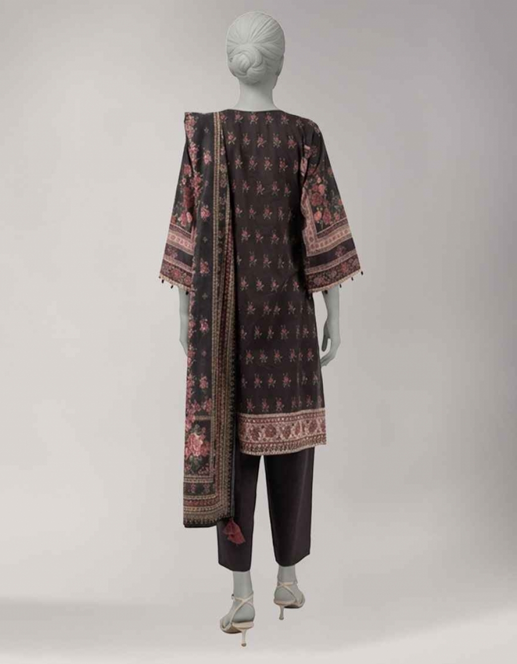 BLACK LAWN EMBROIDERED UNSTITC...