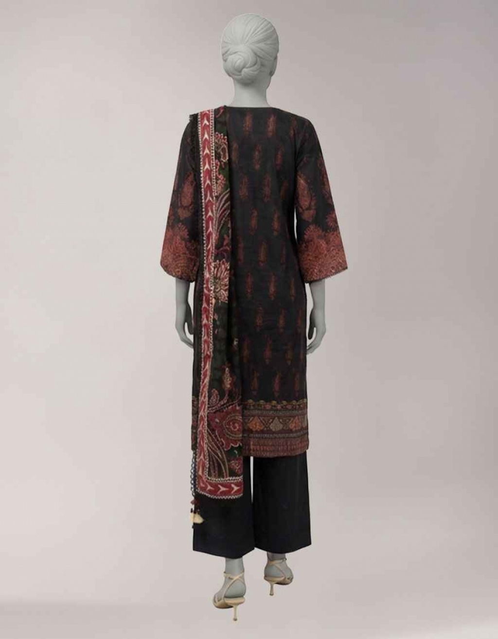 BLACK LAWN EMBROIDERED UNSTITC...