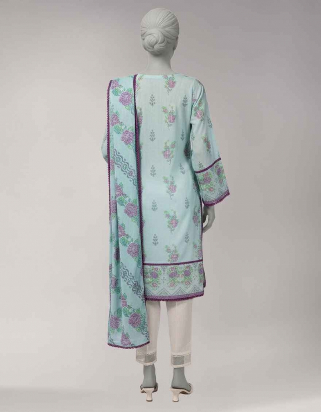 BLUE LAWN EMBROIDERED UNSTITCH...