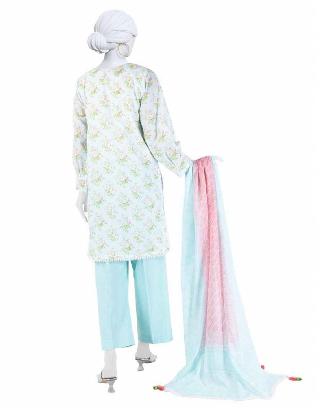 Basic 3 Piece Printed Lawn Shirt: 1.8 Meters Printed Lawn Dupatta: 2.5 Meters Lawn Trouser: 1.8 Meters