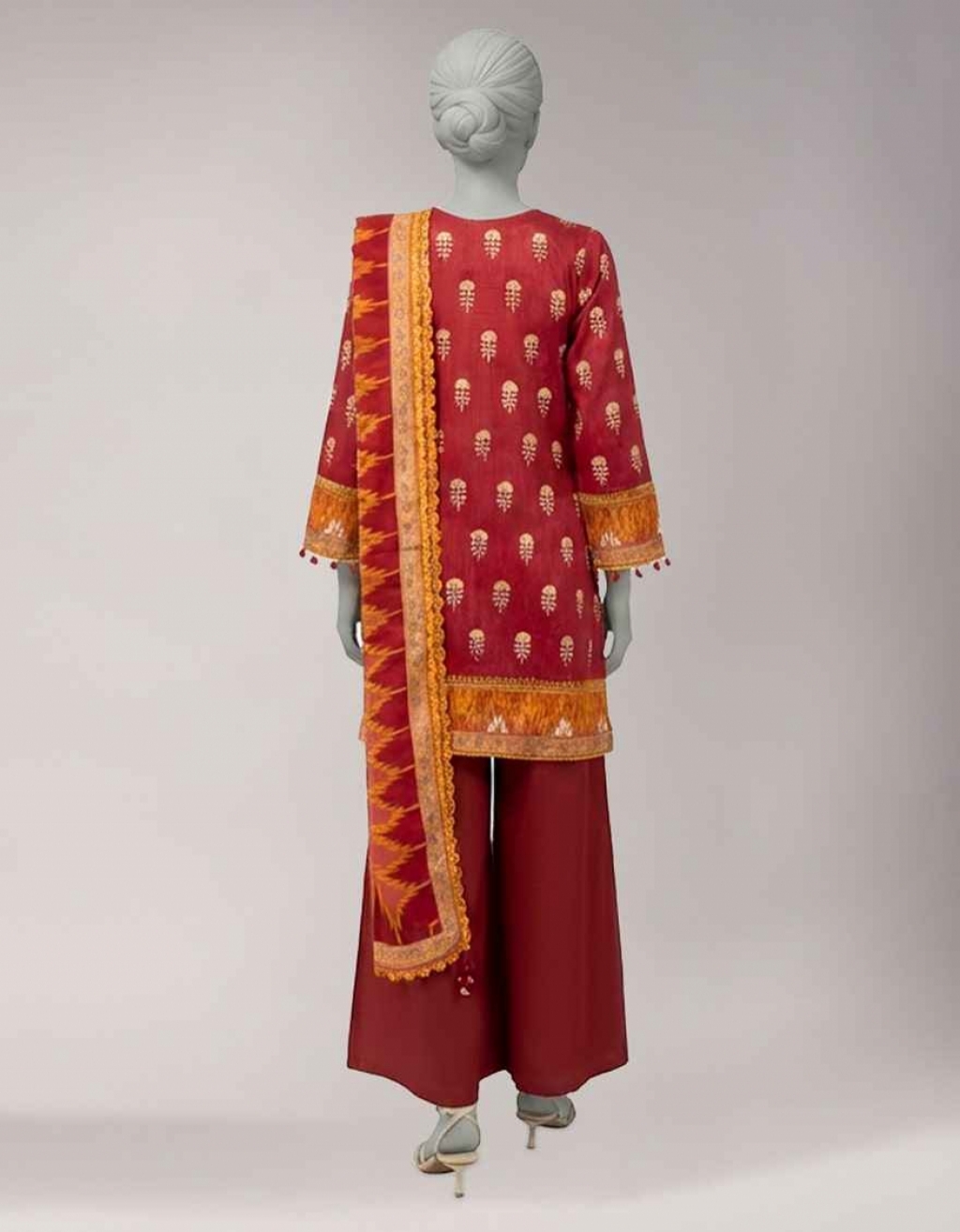 ZARIYA | Basic 3 Piece Printed Lawn Shirt: 3 Meters Printed Lawn Dupatta: 2.5 Meters Dyed Lawn Trouser: 2.5 Meters