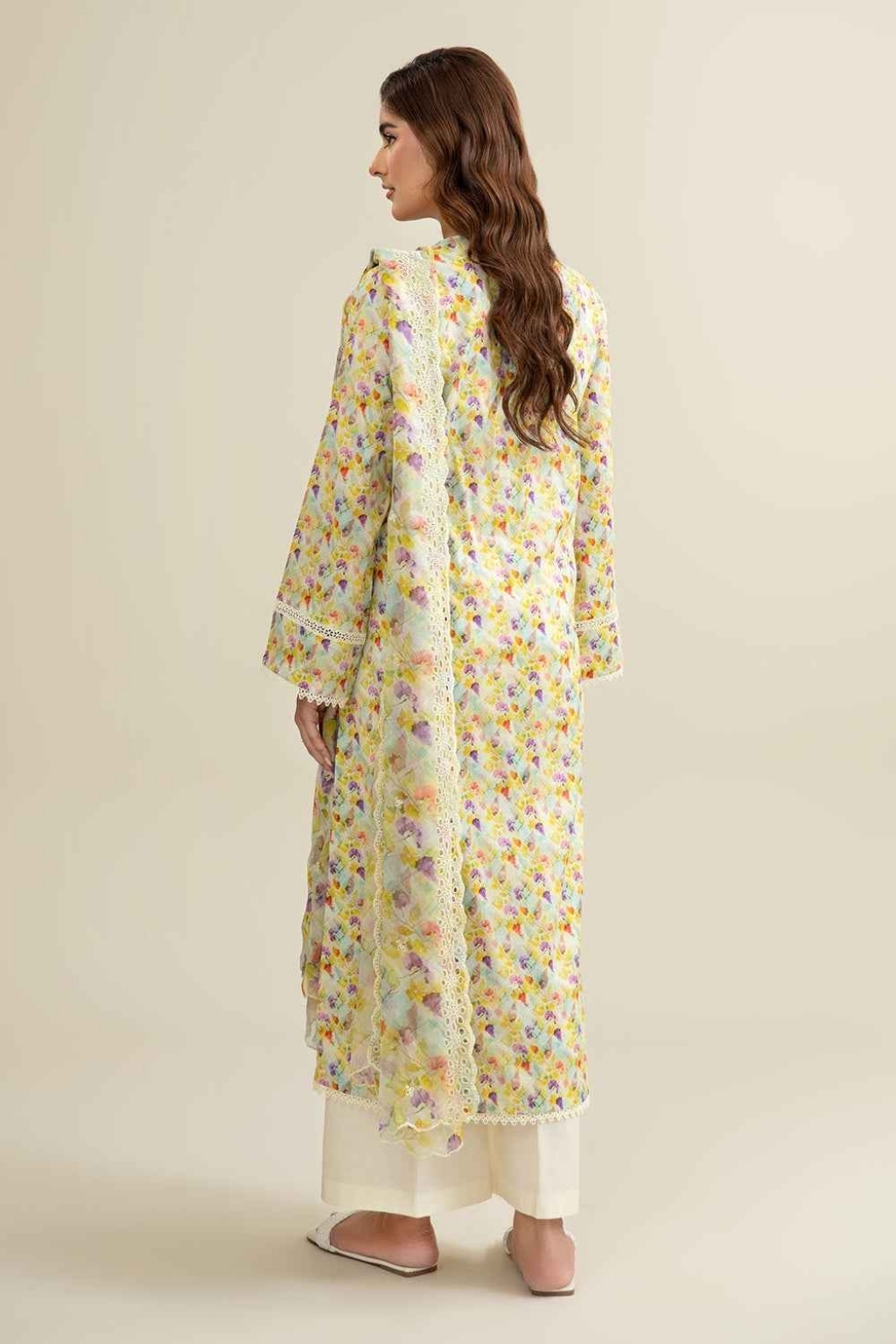 Eid collection 2026 sale 3-Piece Unstitched Shirt Printed Wider Width Lawn Shirt 2.5 M Fabric: Lawn Color: Multi Dupatta Printed & Embroidered Pk Chiffon Dupatta 2.5 M Fabric: PK Chiffon Color: Multi Trouser Dyed Cambric Trouser 2.25 M Fabric: Cambric Color: Off White