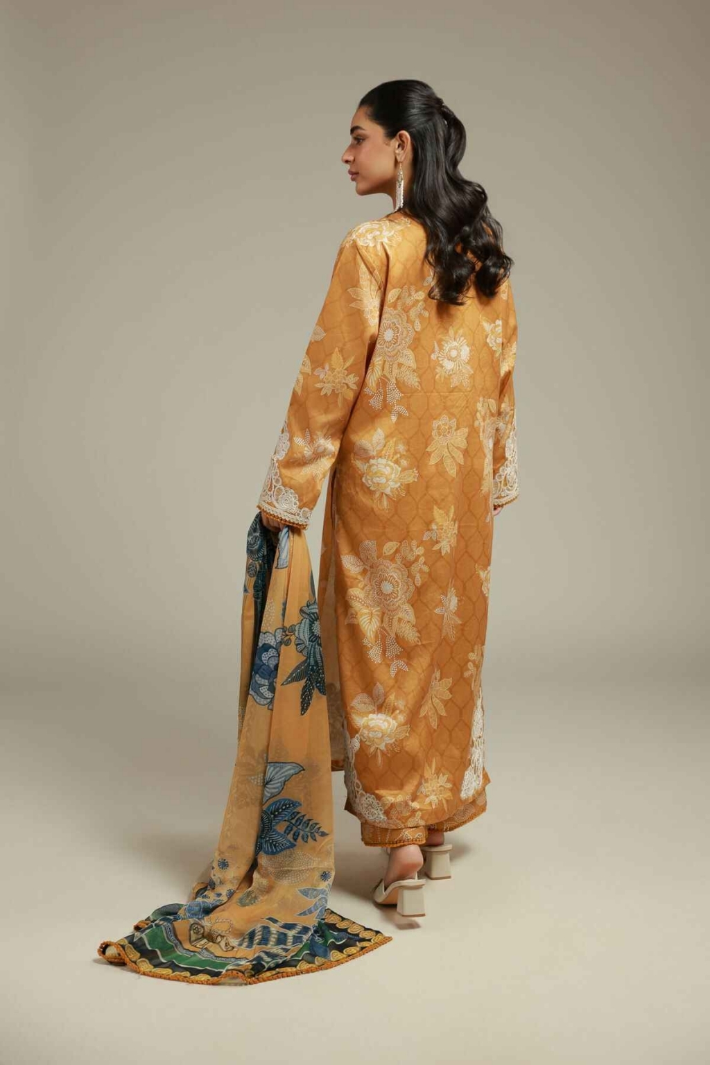 Fabrics 3 Piece Top Fabric: Digital Printed | Satin | 3m Bottom Fabric: Digital Printed | Satin | 2.5m Dupatta Fabric: Digital Printed | Chiffon | 2.5m Material: Satin Add Ons: Embroidered Organza Bunches | 2pc Embroidered Organza Bunches | 4pc