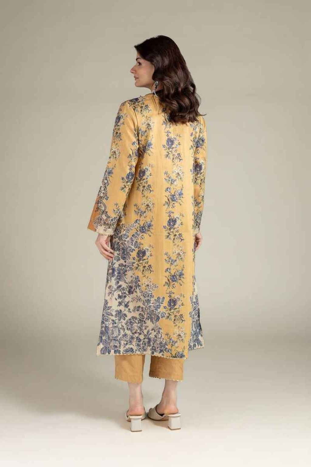 Mustard with blue floral unstitched 2 piece Printed Jacquard suit by khaadi