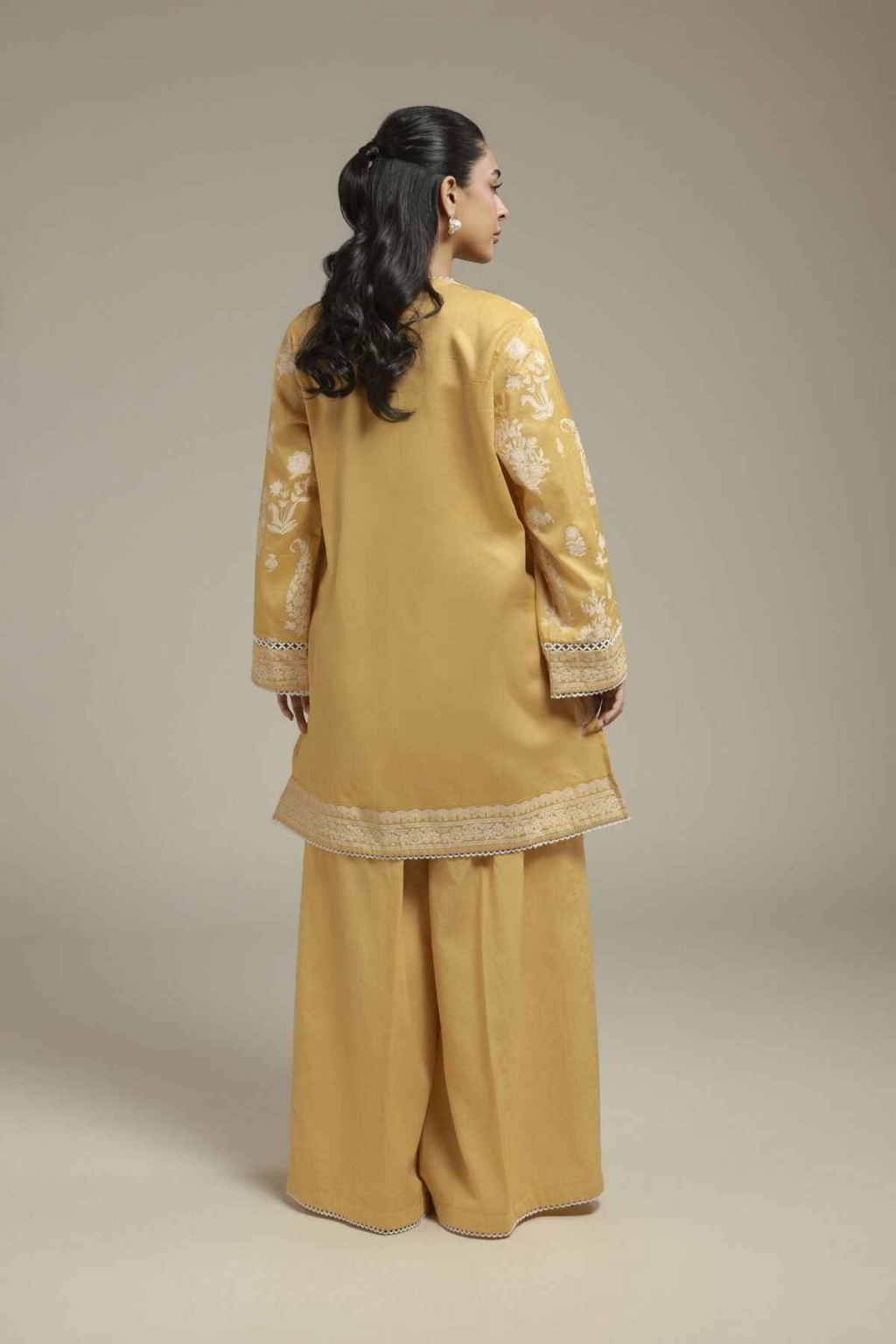 Style Collection: Mustard with Cream Floral Print unstitched 2 piece Printed Cambric suit by khaadi