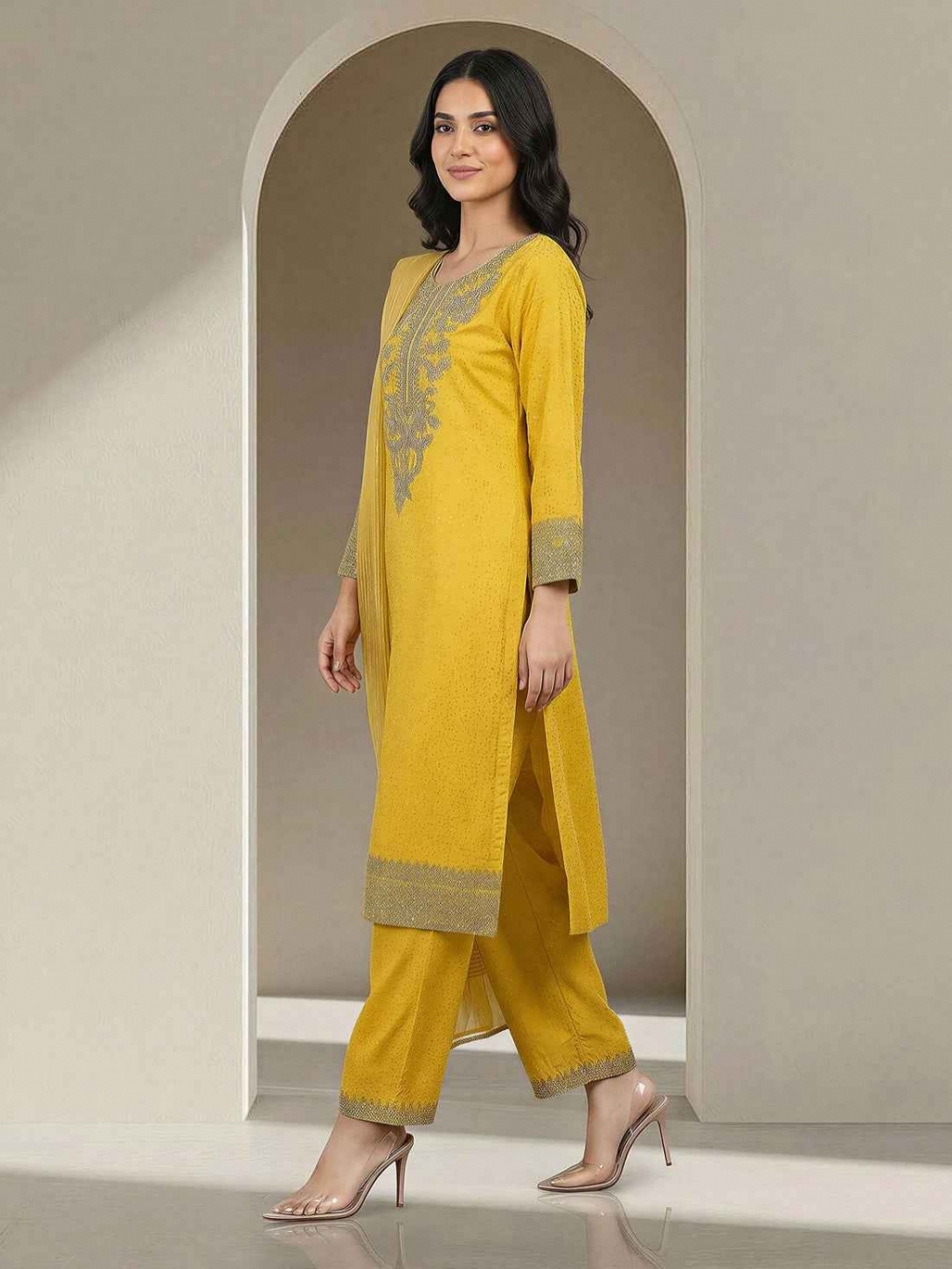 Shirt Embroidered- 2.5m Fabric: Lawn Paste Dupatta Dyed- 2.5m Fabric: Yarn Dyed Bottom Printed- 1.9m Fabric: Cambric Paste Color: Olive