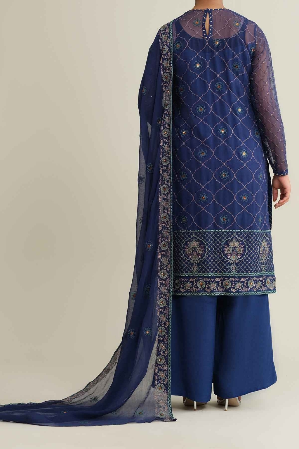 Eid collection 2026 sale 4-Piece Unstitched Shirt Dyed & Embroidered Bamber Chiffon Shirt Front 1.25 M Dyed & Embroidered Bamber Chiffon Shirt Back 1.25 M Dyed & Embroidered Bamber Chiffon Sleeves 0.66 M Fabric: Bamber Chiffon Color: Blue Lining Dyed Cotton Silk Lining 2.5 M Fabric: Cotton Silk Color: Blue Dupatta Dyed & Embroidered Bamber Chiffon Dupatta 2.5 M Fabric: Bamber Chiffon Color: Blue Trouser Dyed Wider Width Raw Silk Trouser 2.5 M Fabric: Raw Silk Color: Blue