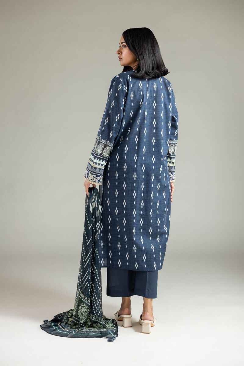 Fabrics 3 Piece Top Fabric: Digital | Lawn | 3m Bottom Fabric: Dyed | Cambric | 2.5m Dupatta Fabric: Digital | Chiffon | 2.5m Material: Lawn Add Ons: Embroidered Organza Border | 2m -