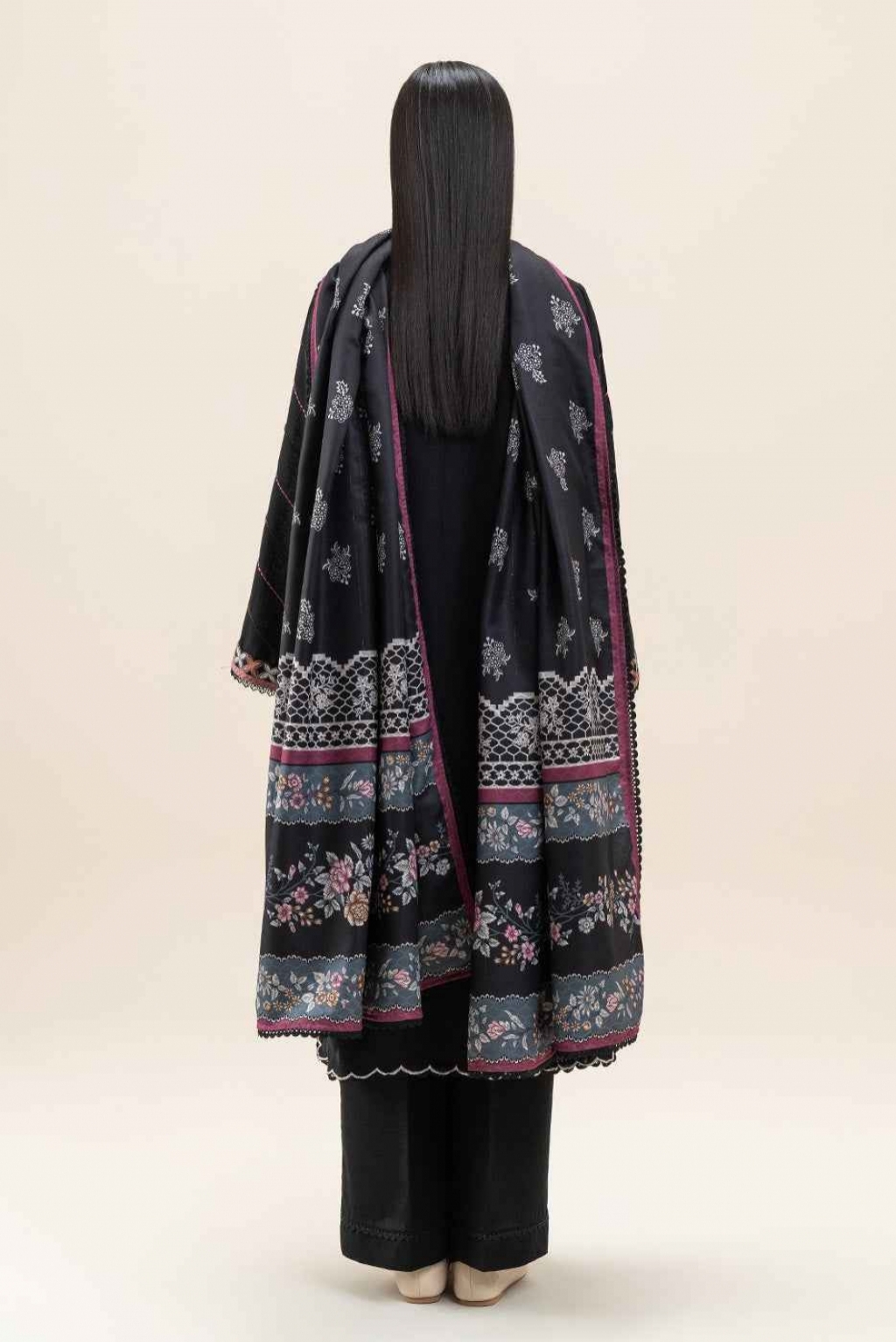 1.2 Mtrs Embroidered Light-Khaddar Front, 0.76 Mtrs Embroidered Sleeves Border, 0.5 Mtrs Light-Khaddar Sleeves, 1.2 Mtrs Light-Khaddar Back, 2.5 Mtrs Printed Herringbone Shawl, 1.65 Mtrs Dyed Pants