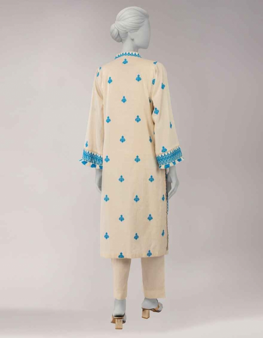 OFF WHITE LAWN EMBROIDERED UNSTITCHED 2 PIECE SUIT BY JUNAID JAMSHED