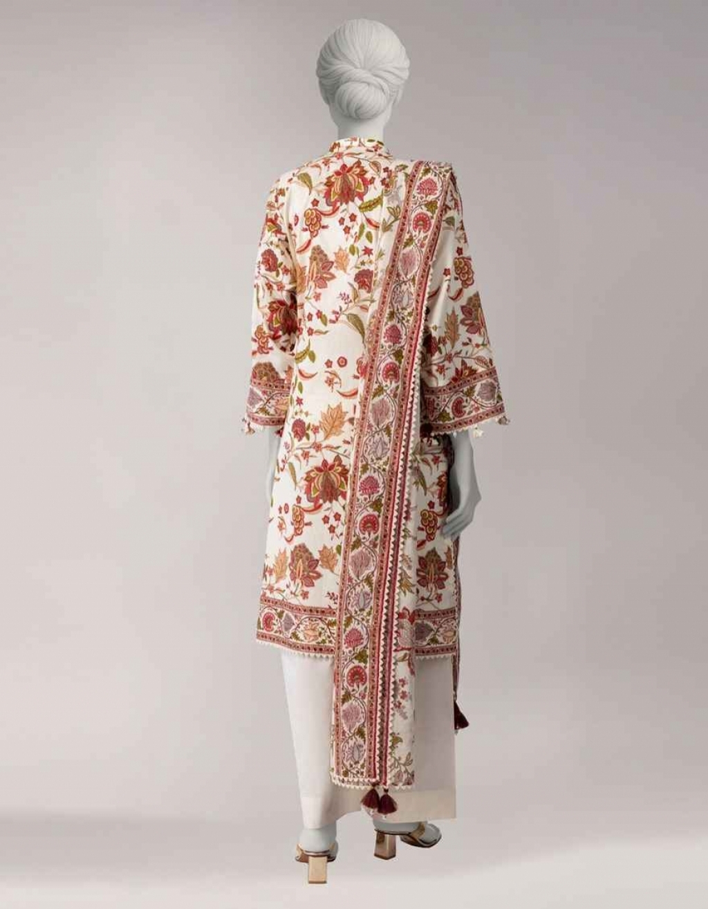 Style Collection: OFF WHITE LAWN PRINTED UNSTITCHED 3 PIECE SUIT BY JUNAID JAMSHED