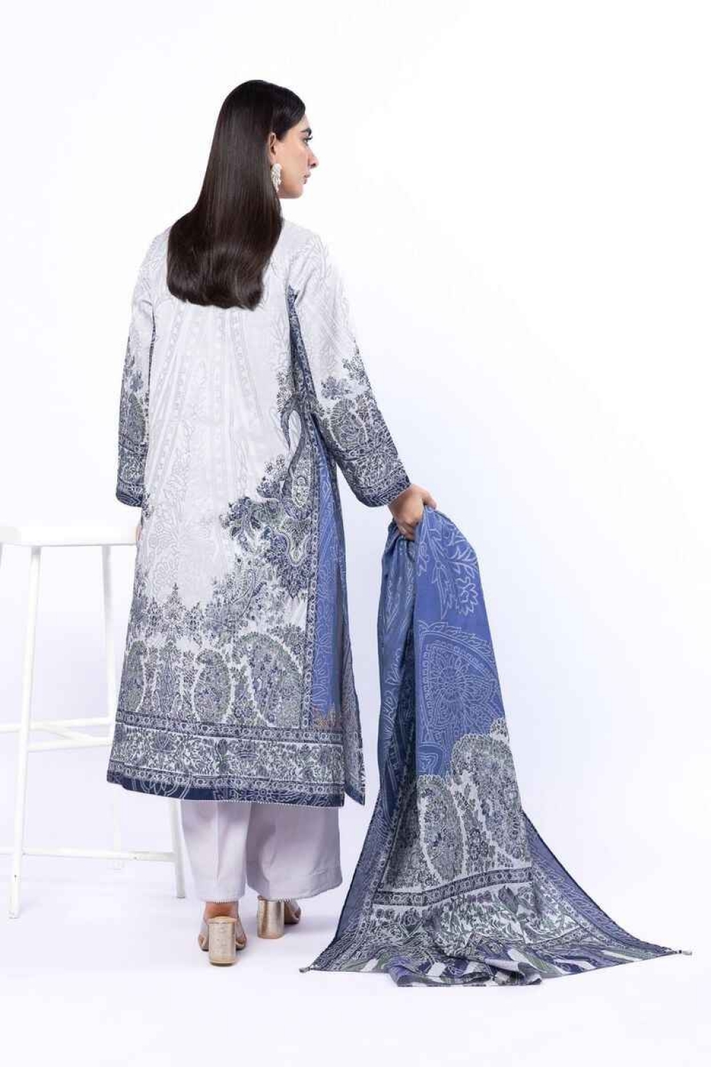 Style Collection: Off White with Blue printed unstitched 3 piece dyed Printed | Jacquard 3pc sui by khaadi