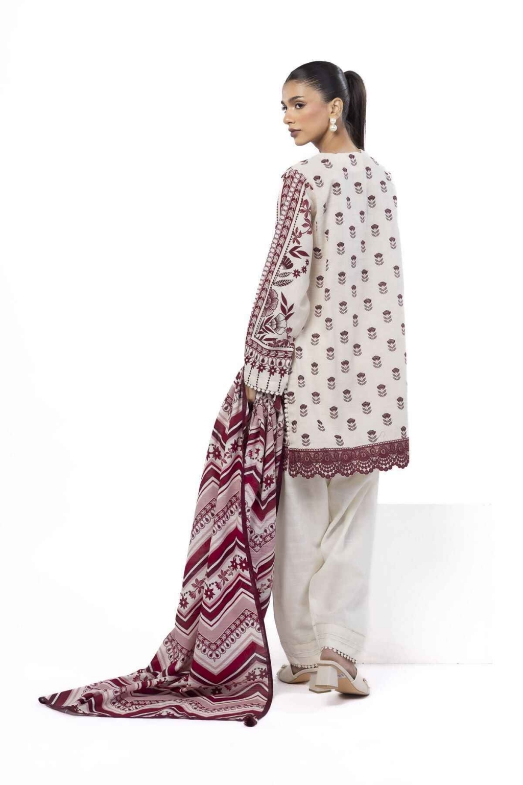Top Fabric: Printed Khaddar | 1.75m Bottom Fabric: Dyed Khaddar | 1.6m Dupatta Fabric: Printed Khaddar | 2.5m Material: Khaddar Add Ons: Embroidered Organza Border | 2m