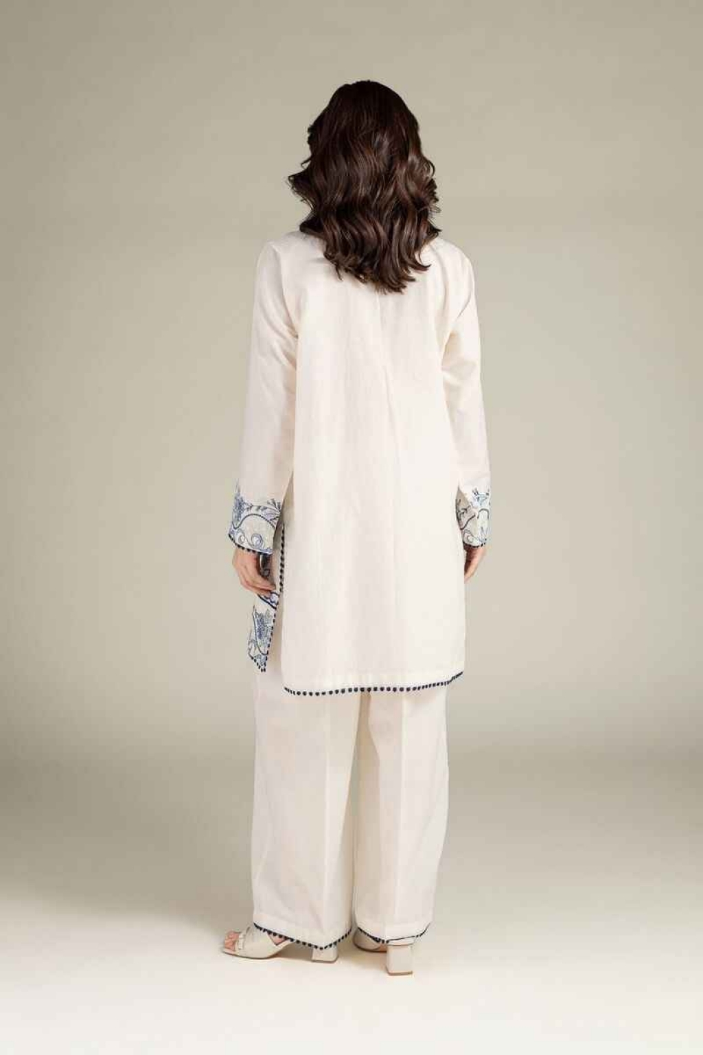 Style Collection: Off-White with Navy Blue Embroidery unstitched 2 piece dyed Embroidered Cambric 2pc suit by khaadi