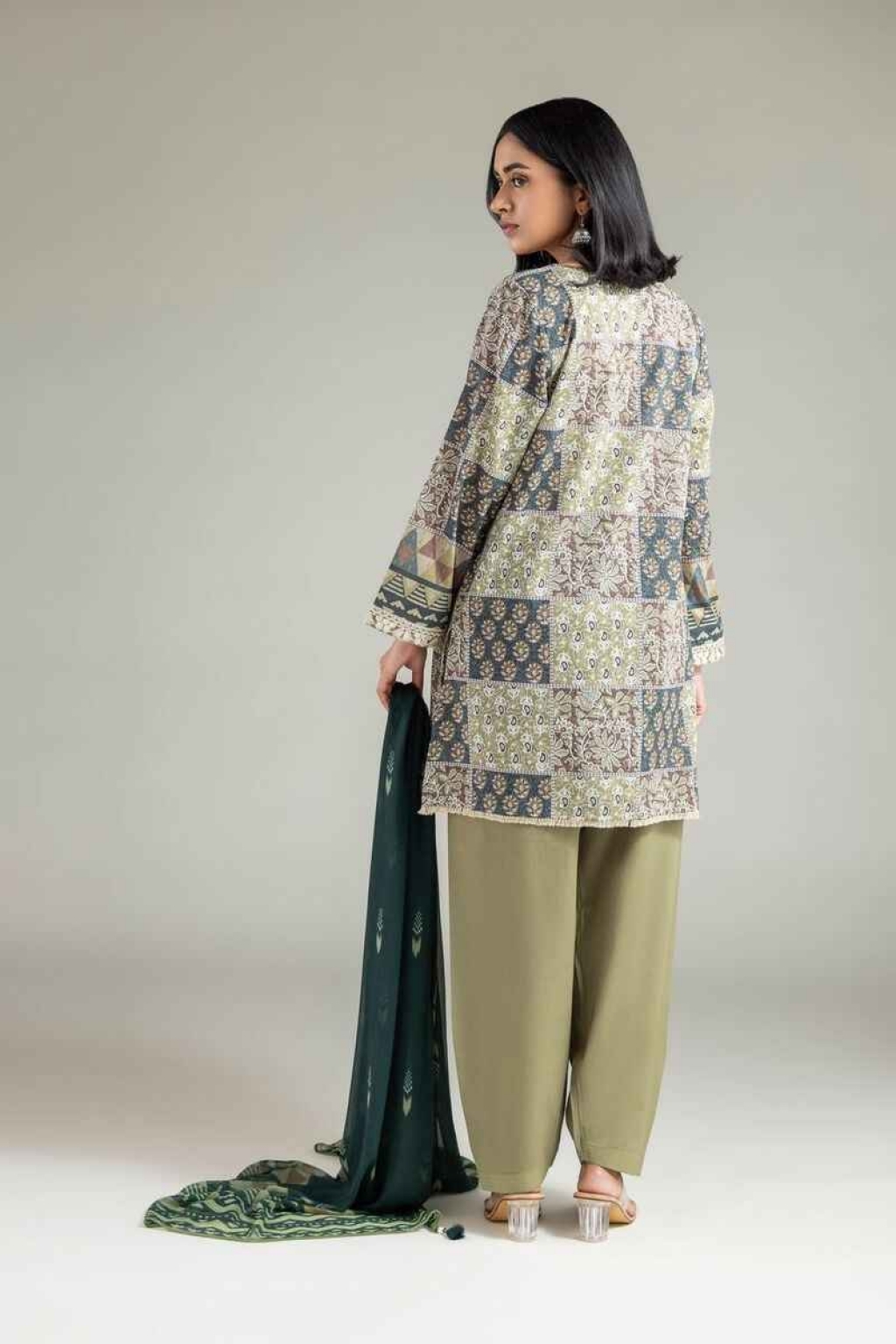 Fabrics 3 Piece Top Fabric: Digital | Lawn | 3m Bottom Fabric: Dyed | Cambric | 2.5m Dupatta Fabric: Digital | Chiffon | 2.5m Material: Lawn Add Ons: Embroidered Organza Border | 1m -