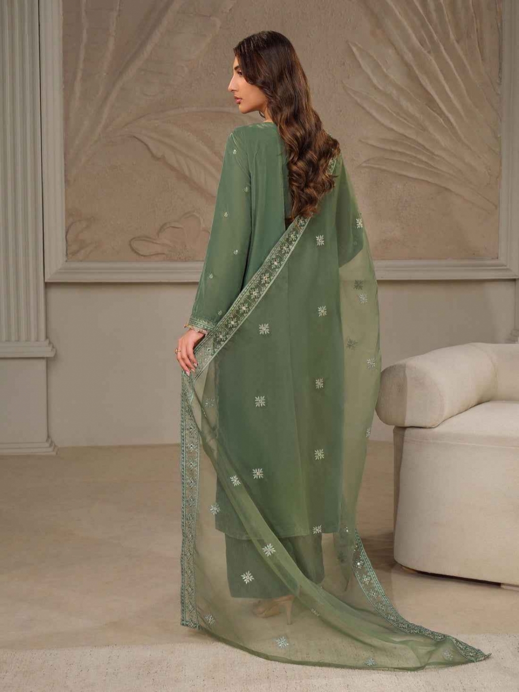 Shirt Dyed embroidered shirt Fabric: Velvet Dupatta Dyed embroidered dupatta Fabric: Organza Trouser Dyed trouser Fabric: Velvet Color: Sea Green