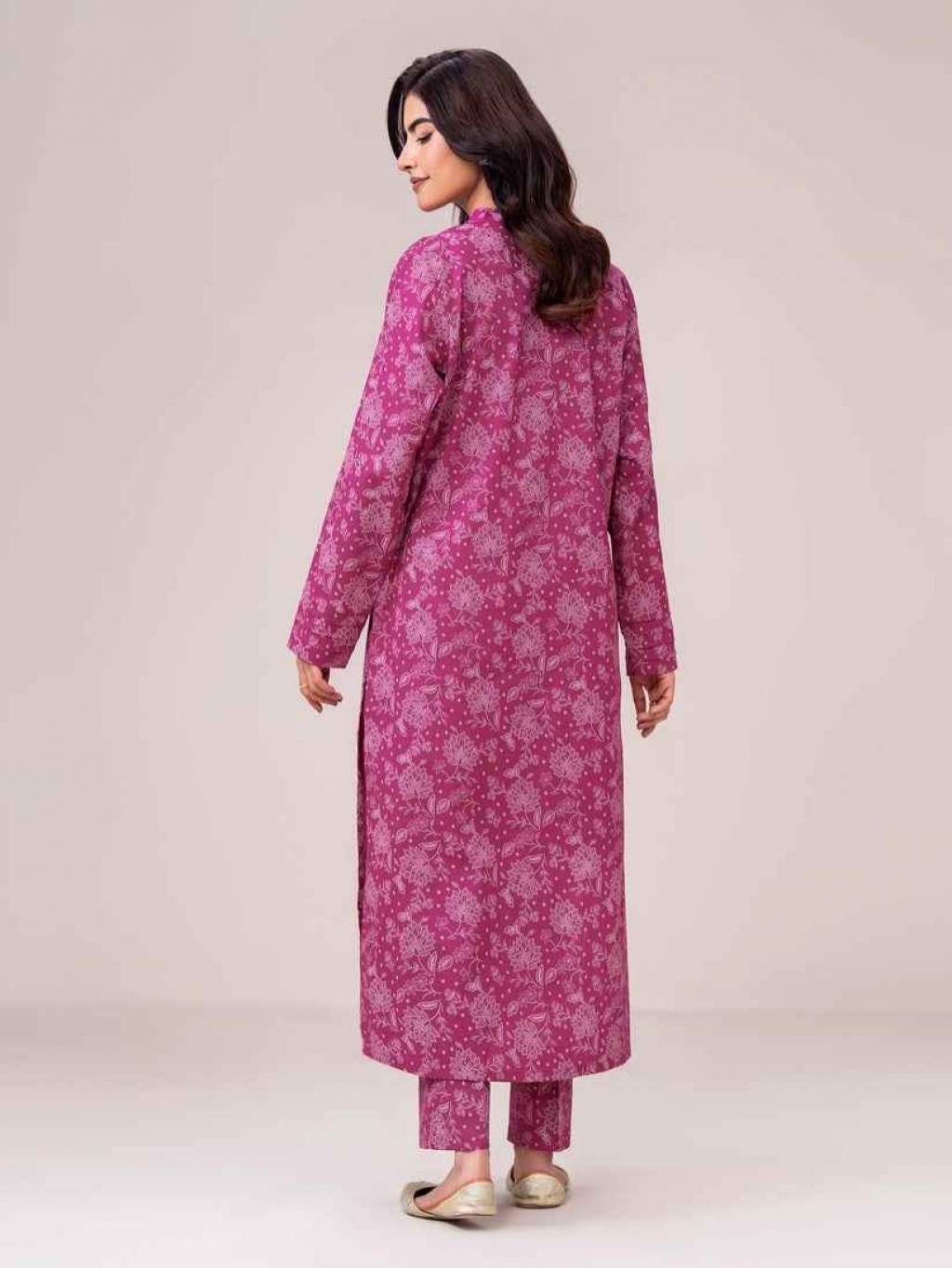 Shirt Printed-1.85m Fabric: Khaddar Color: Pink