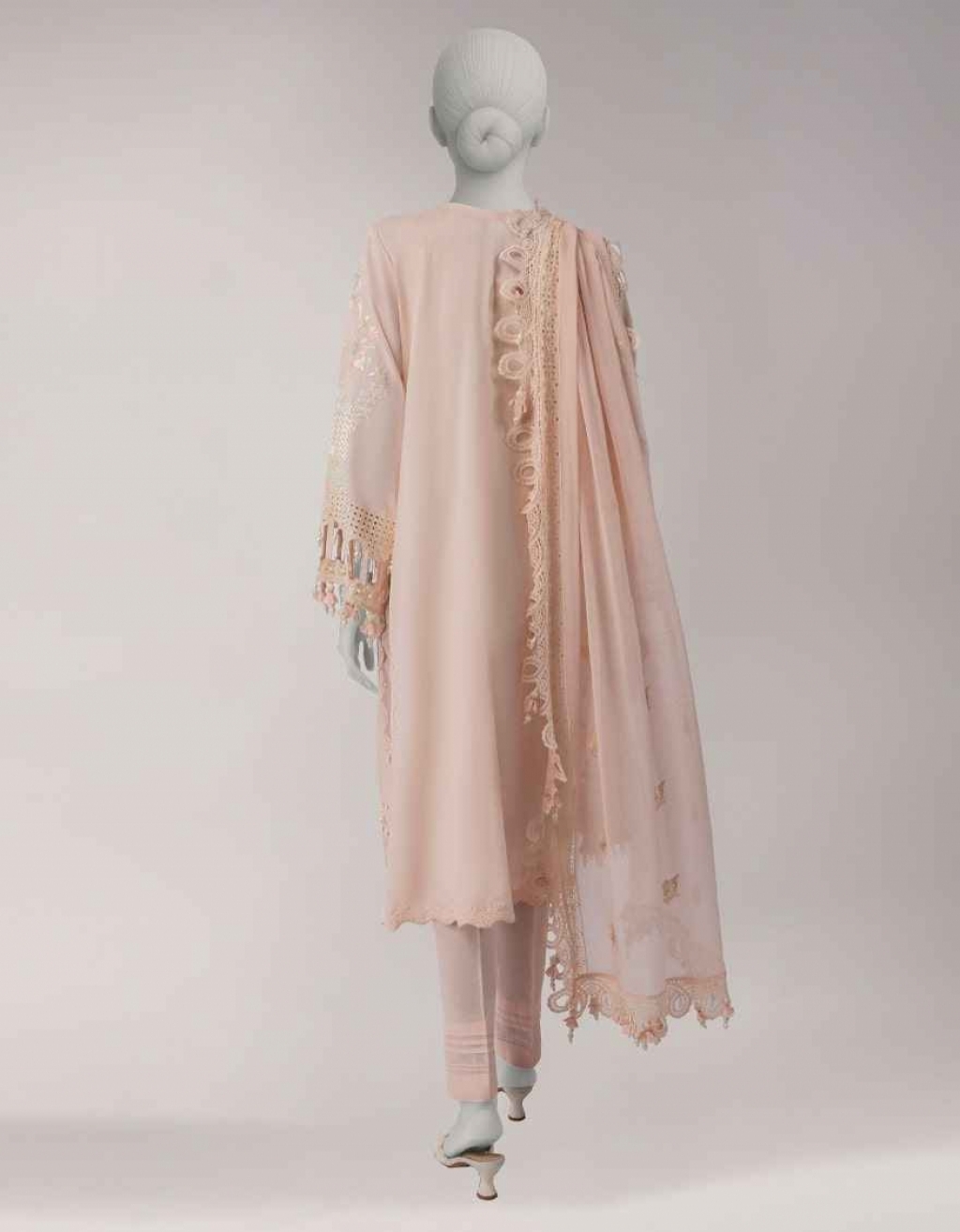 LUXE | Embroidered 3 Piece Schiffli Lawn Shirt: 3 Meters Schiffli Chiffon Dupatta: 2.5 Meters Dyed Lawn Trouser: 2.5 Meters