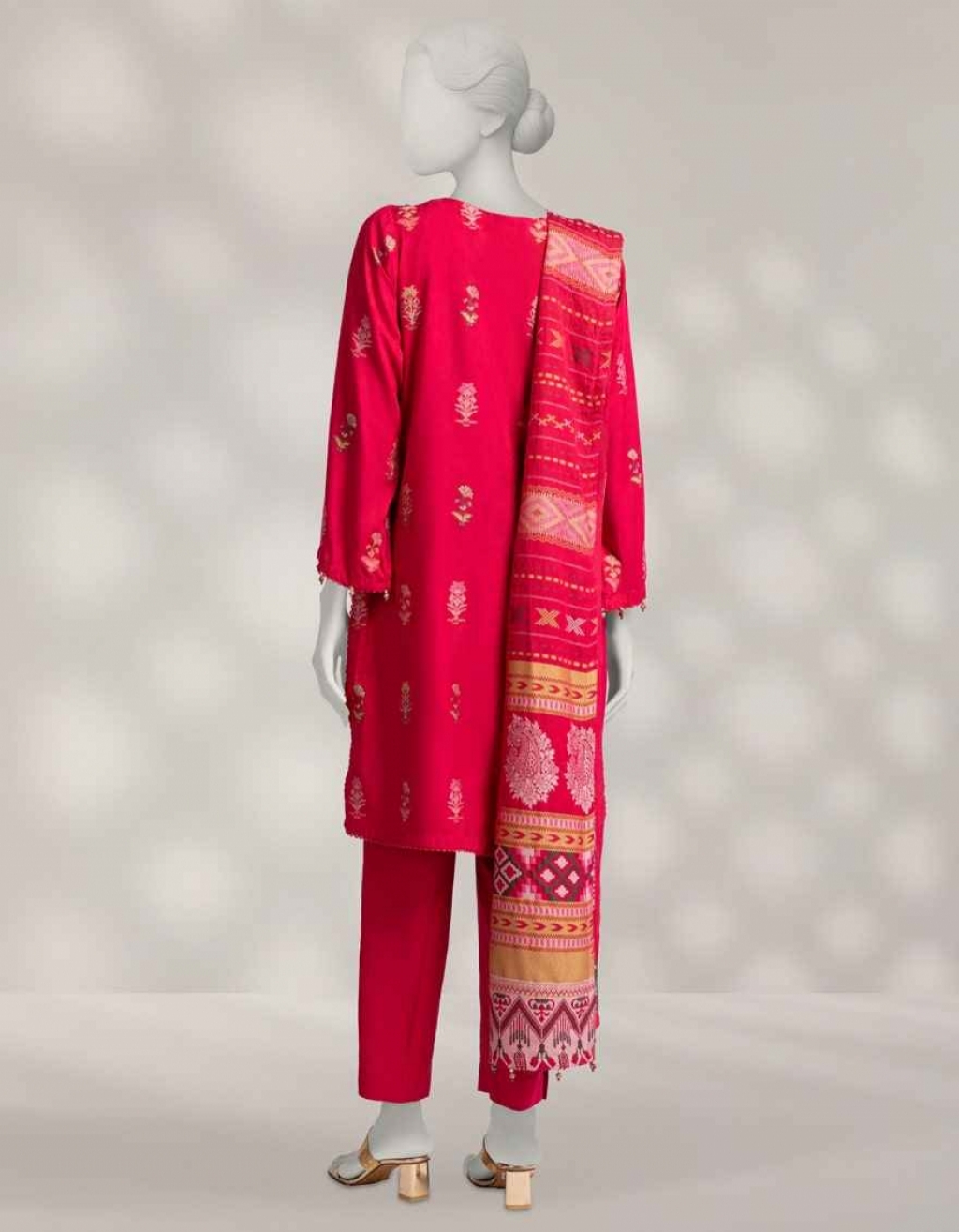 PINK LINEN JACQUARD UNSTITCHED UNSTITCHED 3 PIECE SUIT BY JUNAID JAMSHED