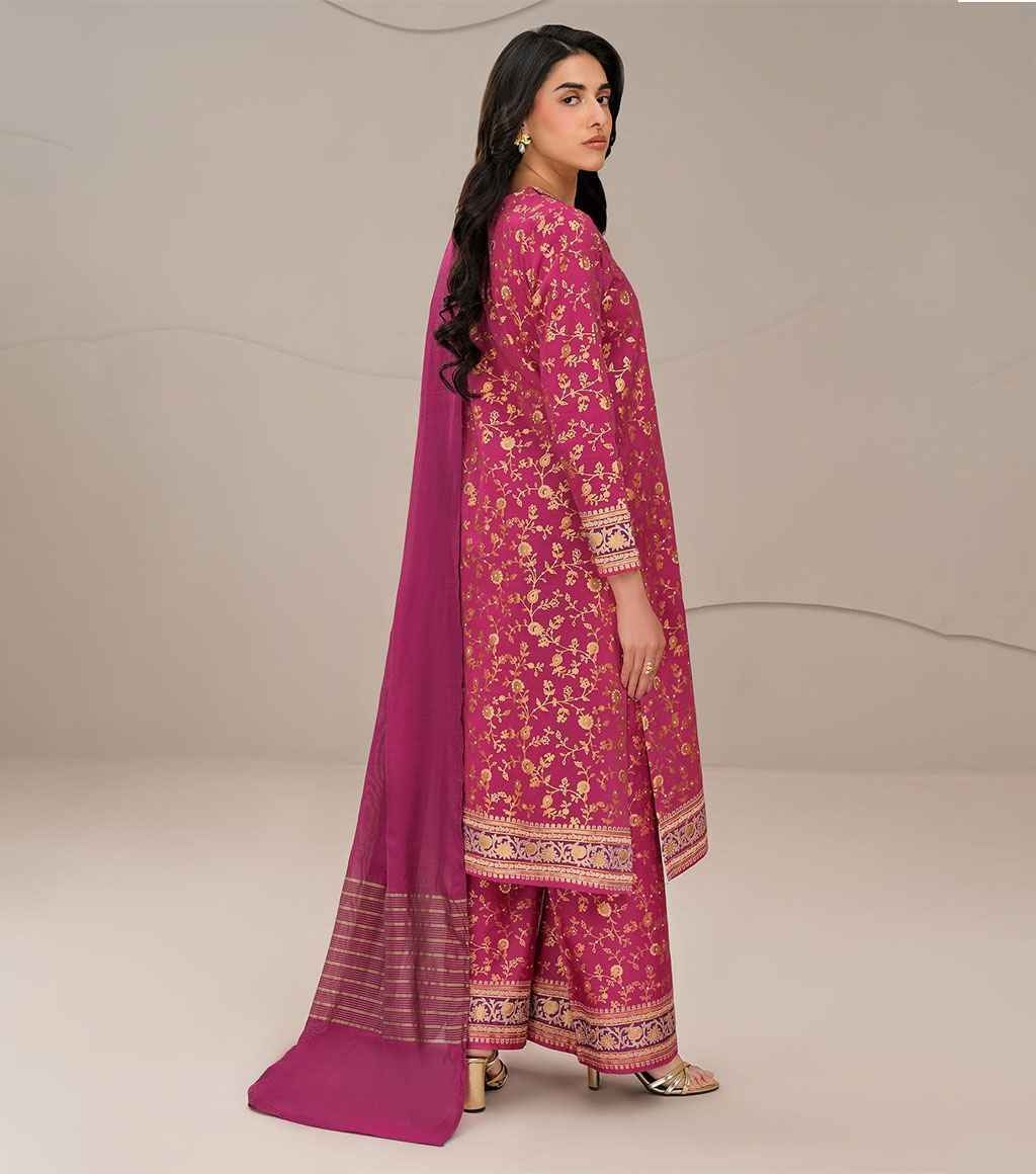 Shirt Paste print shirt1.83 M Fabric: Satin Dupatta Dyed dupatta 2.5 M Fabric: Yarn Dyed Trouser Paste print trouser 1.8 M Fabric: Satin Other Details Color: Plum