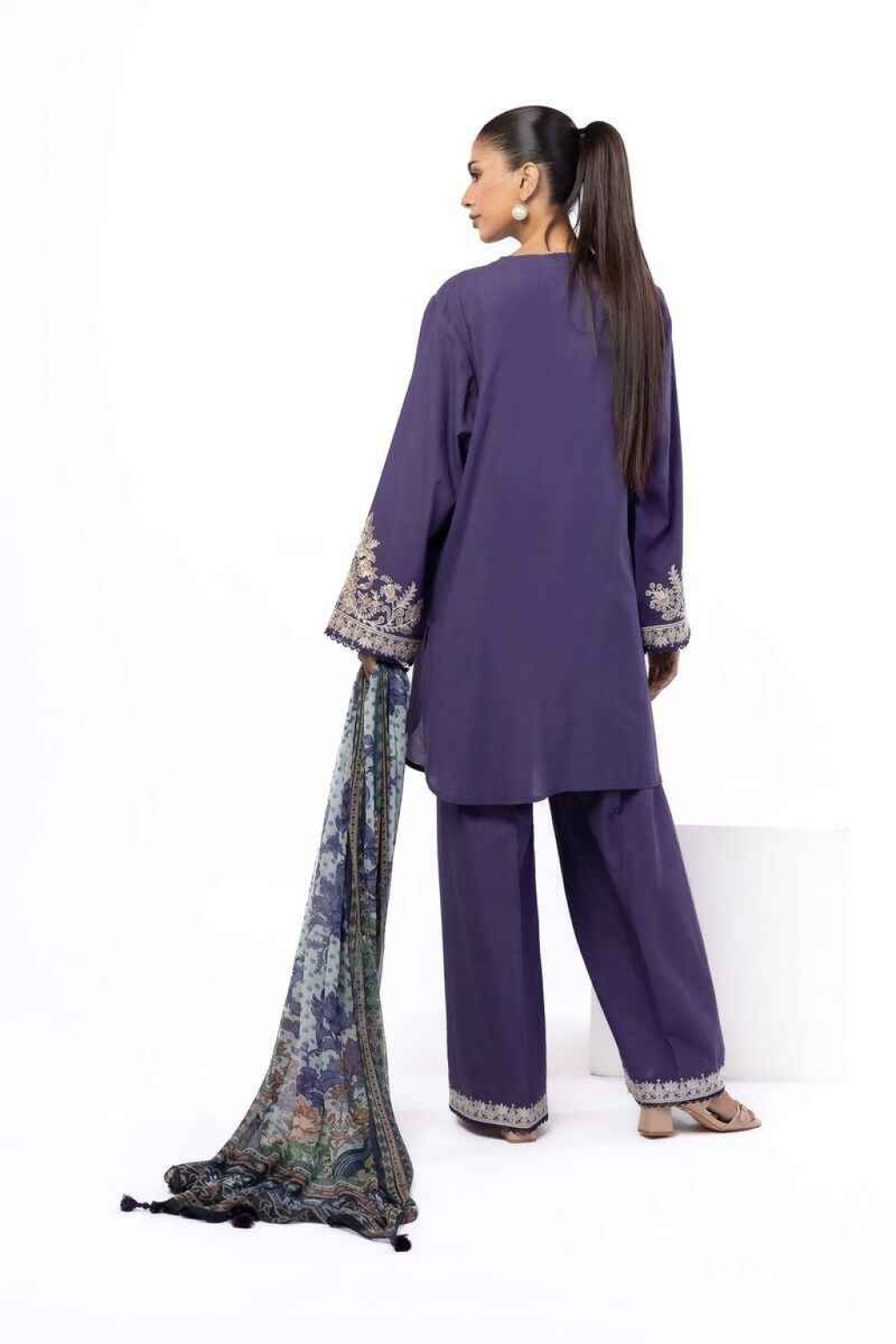 Top Fabric: Dyed Embroidered | Cambric | 3.25m Bottom Fabric: Dyed Embroidered | Cambric | 2.5m Dupatta Fabric: Digital Printed | Crinkle Chiffon | 2.5m Material: Cambric