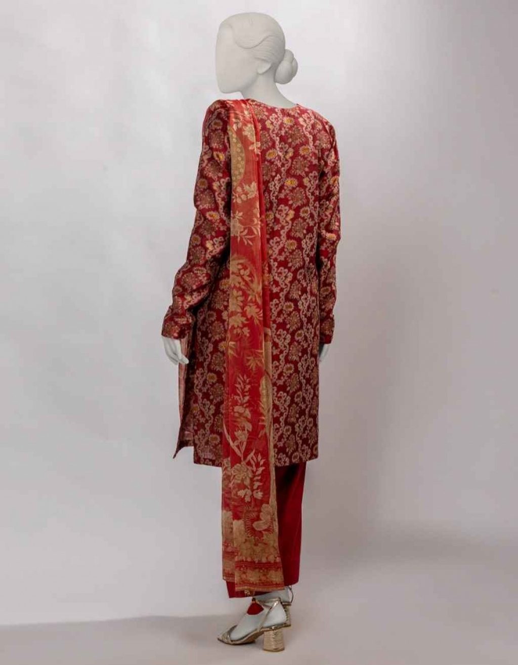 Naqeesh Bunai | Basic 3 Piece Jacquard Shirt: 3.02 Meters Digital Printed Chiffon Dupatta: 2.5 Meters Dyed Cambric Trouser: 2.5 Meters