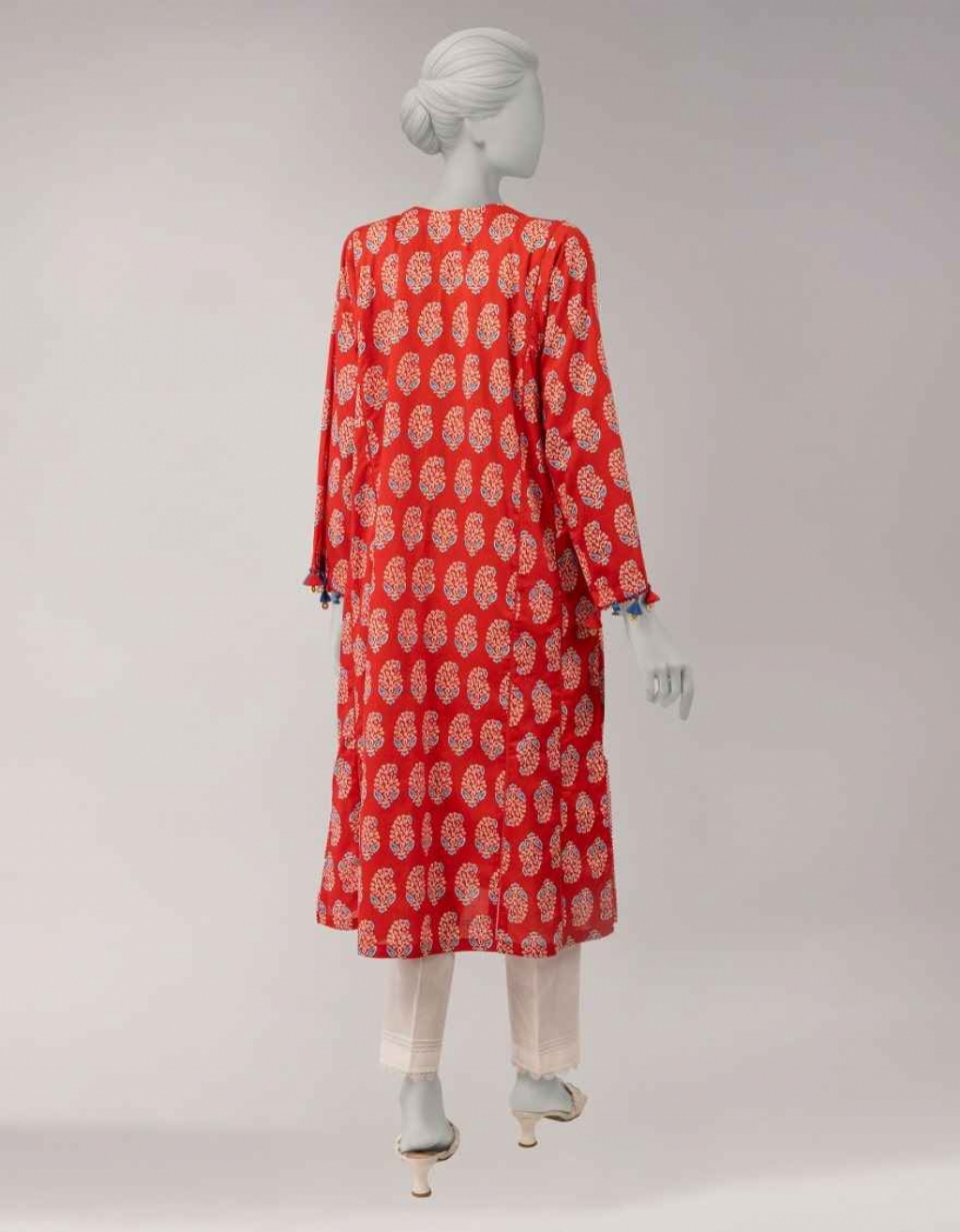 RED LAWN PASTE PRINTED UNSTITCHED 1 PIECE SUIT BY JUNAID JAMSHED