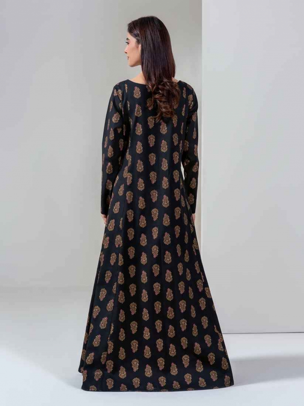 Shirt Printed- 1.85m Fabric: Khaddar-Paste Color: Black