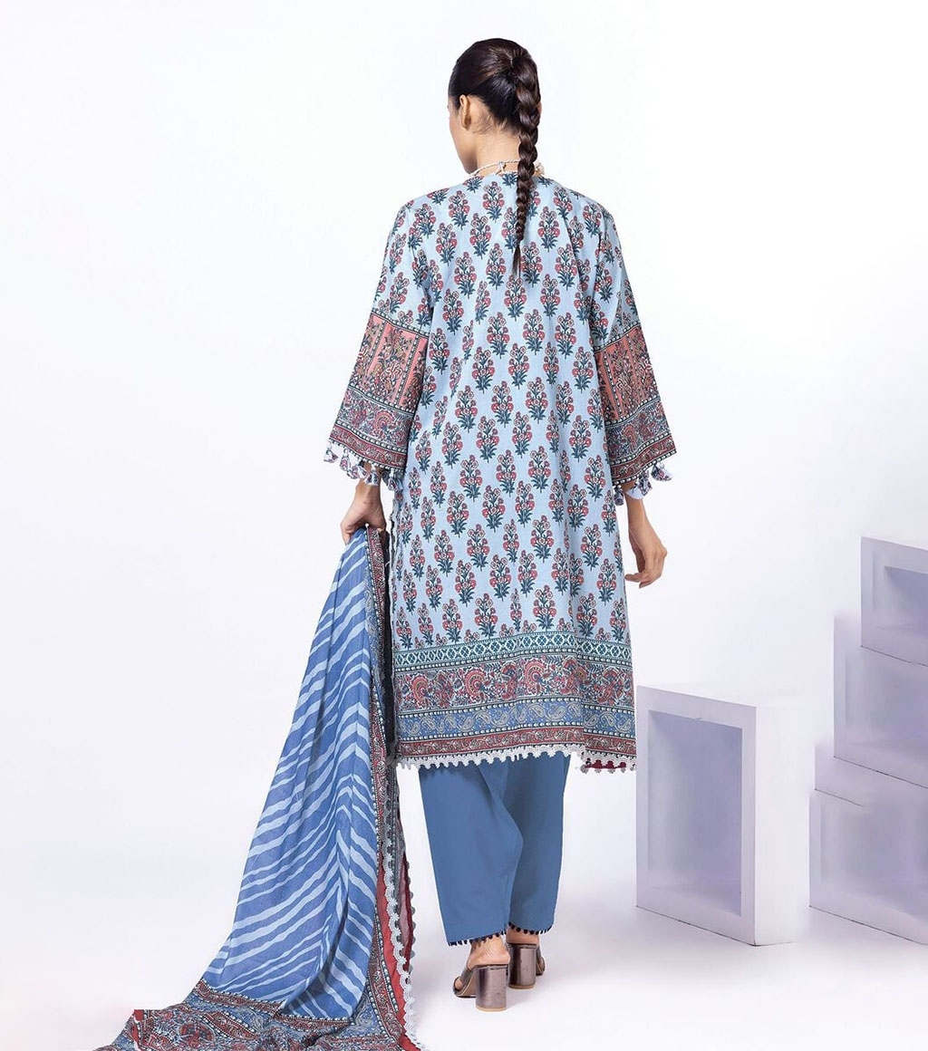 Top Fabric: Digital Printed Dobby | 3m Bottom Fabric: Dyed Dobby | 2.5m Dupatta Fabric: Digital Printed Cotton Dobby | 2.5m Material: Dobby Add Ons: Embroidered Organza Neckline