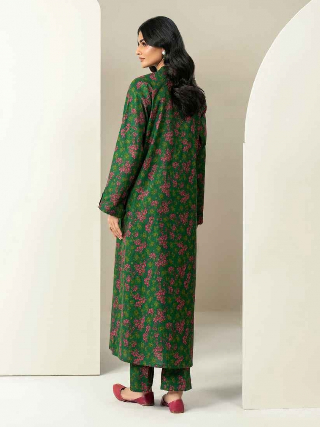 Shirt Printed- 1.85m Fabric: Khaddar Color: Green