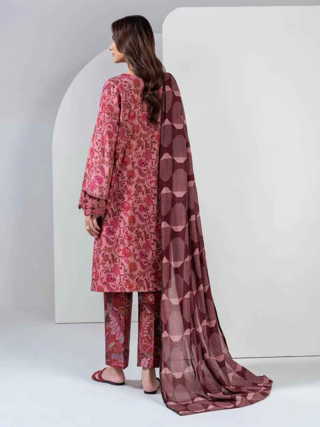 Shirt Embroidered- 2.45m Fabric: Khaddar Shawl Printed- 2.5m Fabric: Herring Bone Bottom Printed- 1.8m Fabric: Khaddar Color: Pink